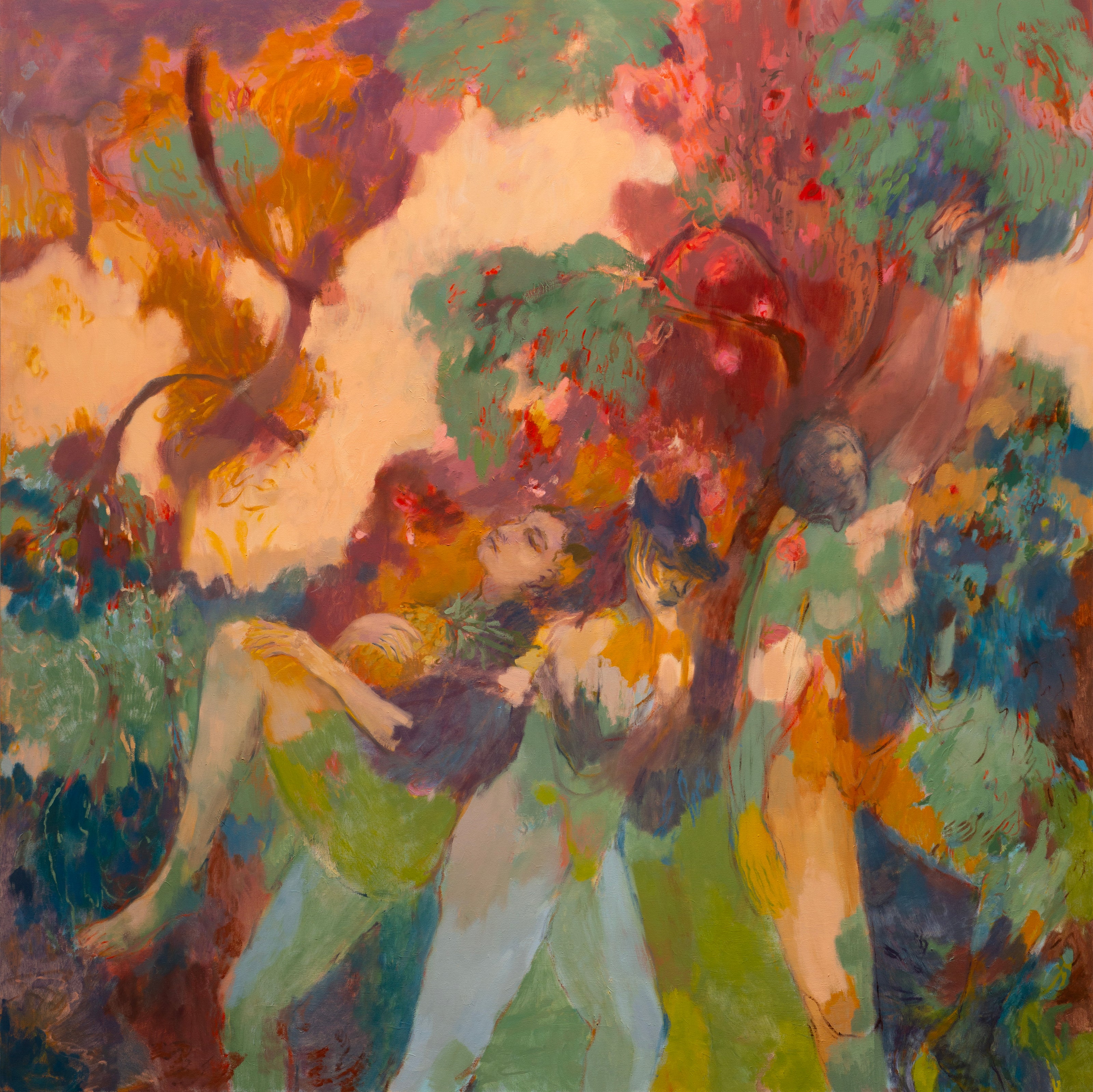 A group exhibition of paintings by Andrew Beck, Elle Chae, Kelly Grace and Jay Li. The artists in Behind the Curtain construct worlds through the collapse of linear time, combining past eras or moments from personal archives in snapshots of layered imagery that capture the stretching and tidal current of time in motion. -