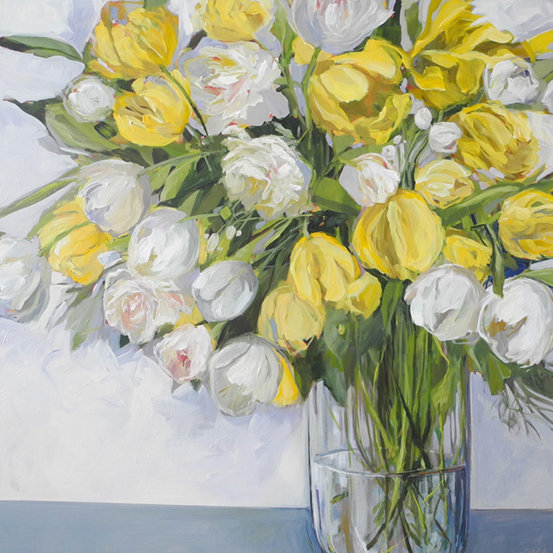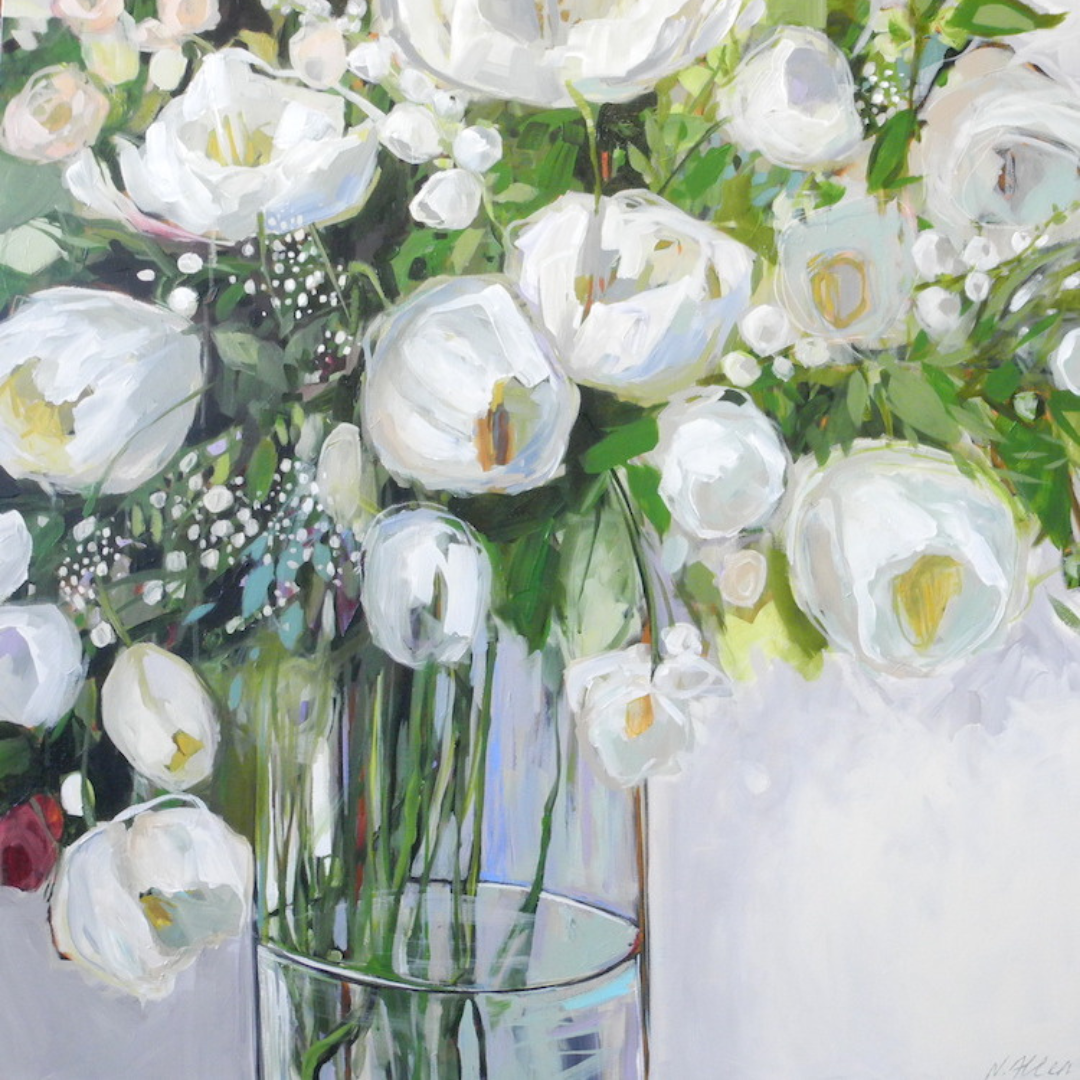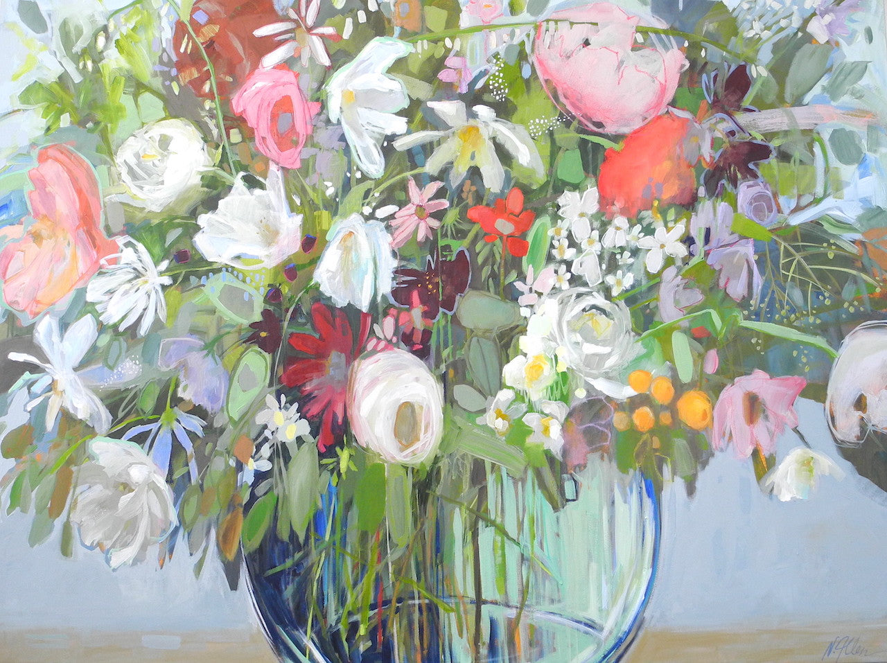 In this body of work Nicole has set out to interpret the balanced but beautifully random patterns and colours of the floral still life.