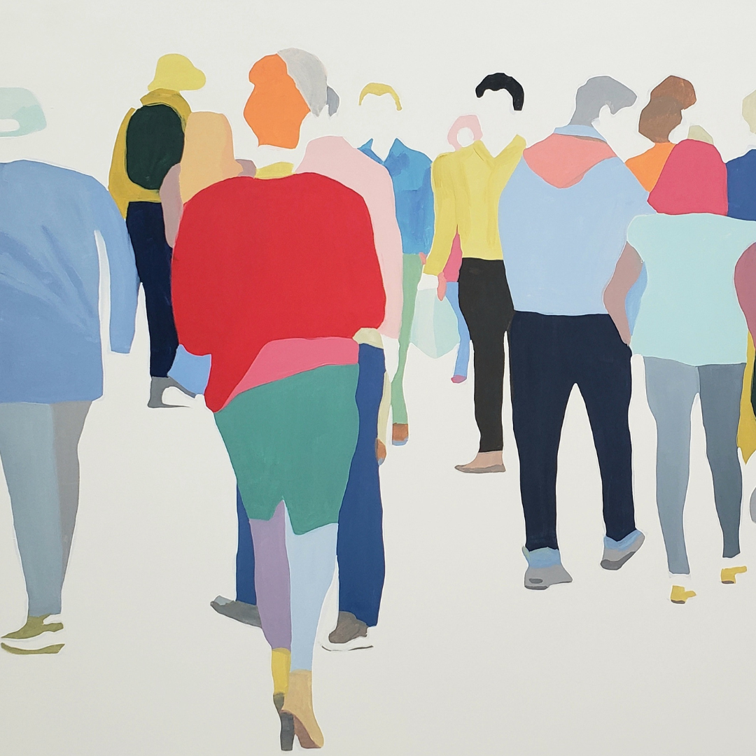 “Block Party”, the latest solo-exhibition by painter Sherry Czekus, features her colour-block approach and use of negative space in the portrayal of ‘crowdscapes’. Czekus breaks away from realistic representation into the tenuous tensions between colour and form. -