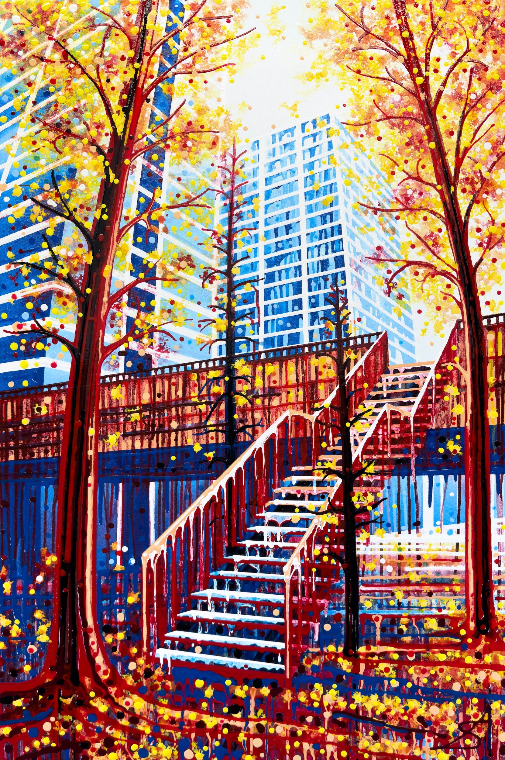 Canadian born Amy Shackleton is a professional visual artist – a skilled urban landscape painter with an inventive technique embracing gravity. Her background includes a Fine Arts Honours Degree from York University (Toronto, ON), an extensive exhibition history, including a 2017/18 National Tour exhibiting her 53-foot interpretive panorama of Canada, and paintings displayed in hundreds of private and public collections, including THE MUSEUM, Colart Collection, Facebook Canada, and the University of Cincinnati. Shackleton is an active member on the Board of Directors at the Visual Arts Centre of Clarington and within the larger Ontario and Canadian arts community. She works from her studio in Oshawa, Ontario.