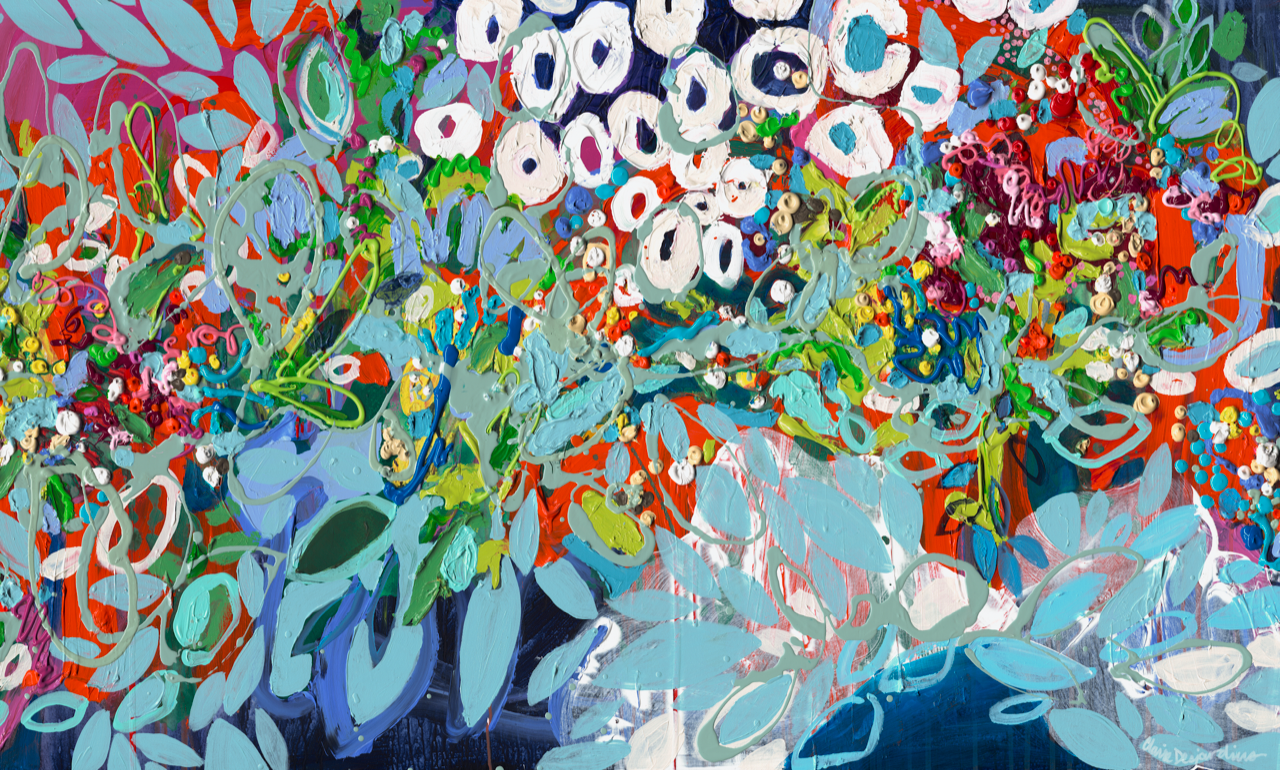 Claire Desjardins is an award-winning abstract painter known for her vibrant and dynamic compositions. Originally from Montreal, Desjardins now lives an hour north of that city. Surrounded by the natural beauty of the Laurentians, she spends most days painting in her studio. Desjardins is represented by galleries in Canada and the United States, and her artworks are found in private and corporate collections around the world.