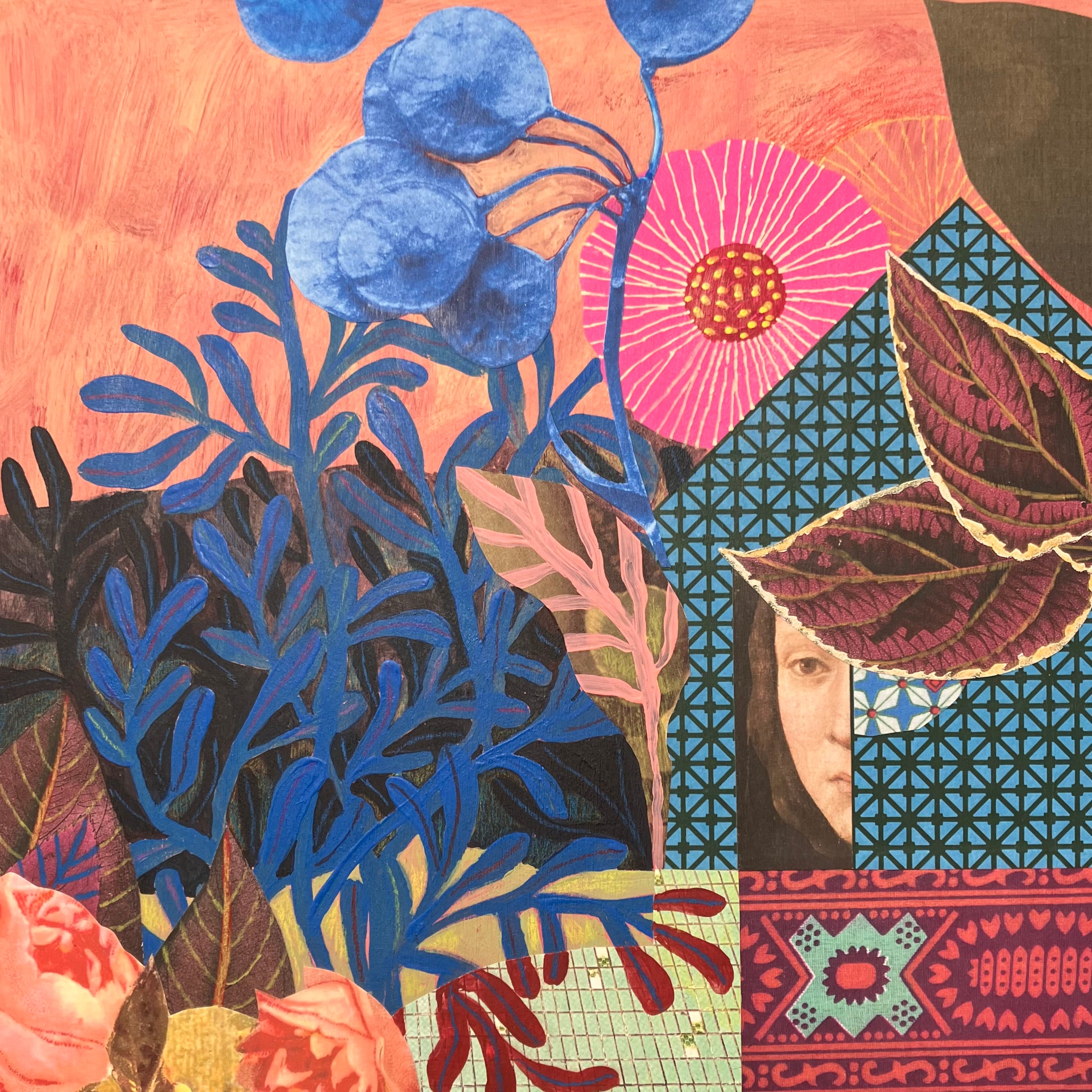 For 20 years I’ve been making assemblage pieces and three dimensional collages in found or handmade frames and boxes. I create mixed media works using paint, wood, papier-mâché, polymer clay, metal and found objects. They feature the cabinet photos, finding that these, in of themselves, evoke imagined histories and feelings of nostalgia. Their serious and stern faces provide an ironic counterpoint to the humour and levity I try to inject into the work. Alternatively, my pieces make evident a playful fascination with all forms of iconography, creating alter-pieces for everyday life, making sacred of the mundane. More recently, I’ve been working on larger pieces that combine painting and collage on wood cradle boards.