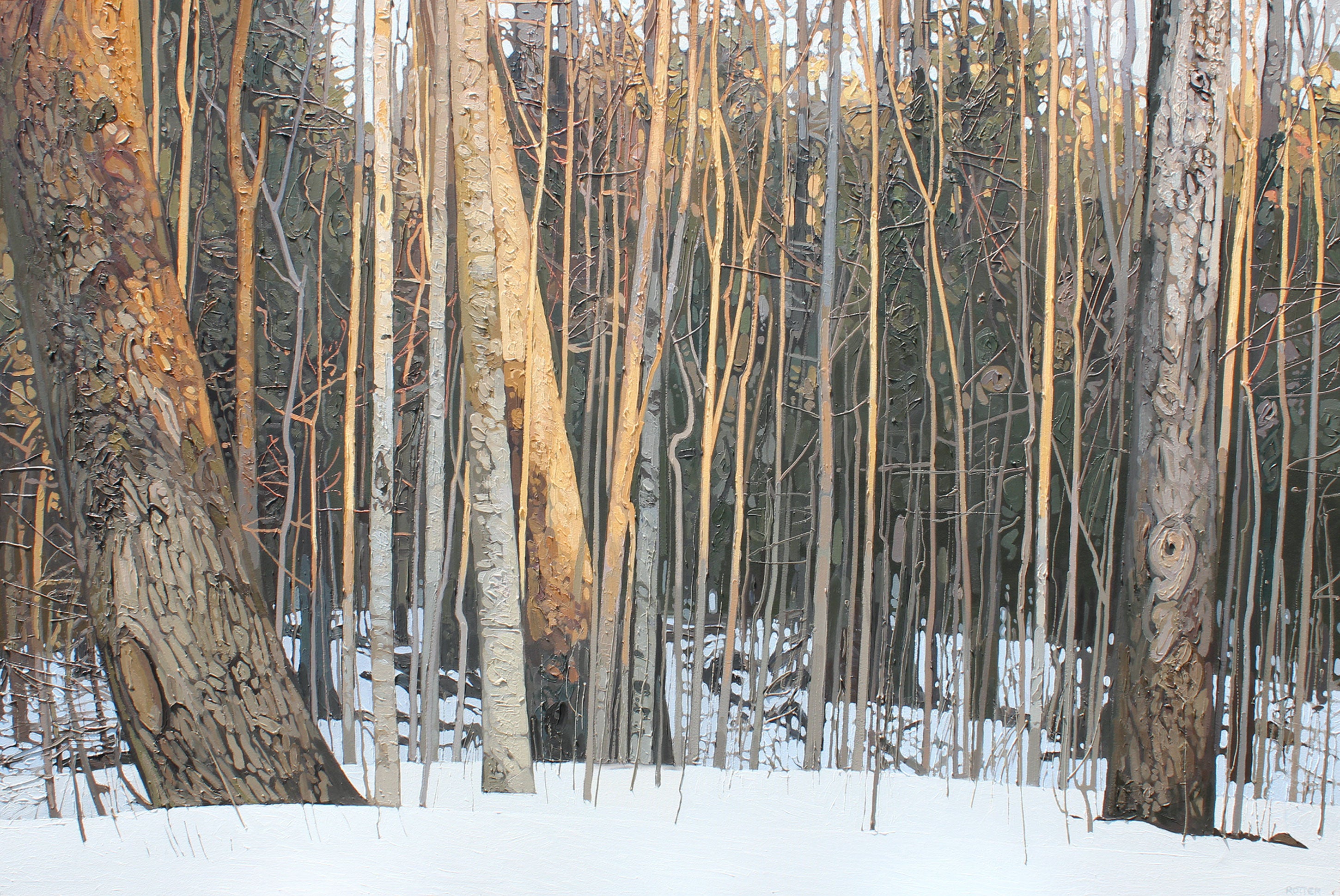 After graduating from the Ontario College of Art in 95, painting the north was a natural homecoming for me. Growing up it was where I spent my summers and weekends. Growing older I’ve realized the impact it made on my life and work. I relocated my home and studio from Toronto to Lakefield ON, in the Kawarthas, to be closer to my inspiration. When painting, I reference photos I’ve taken usually only days prior so the image and feeling is still fresh in my mind. Each piece starts as a small oil sketch, where I focus on colour and composition, this then may or may not lead to a larger canvas. I try to paint every day. This is important for my work as well as my well being.