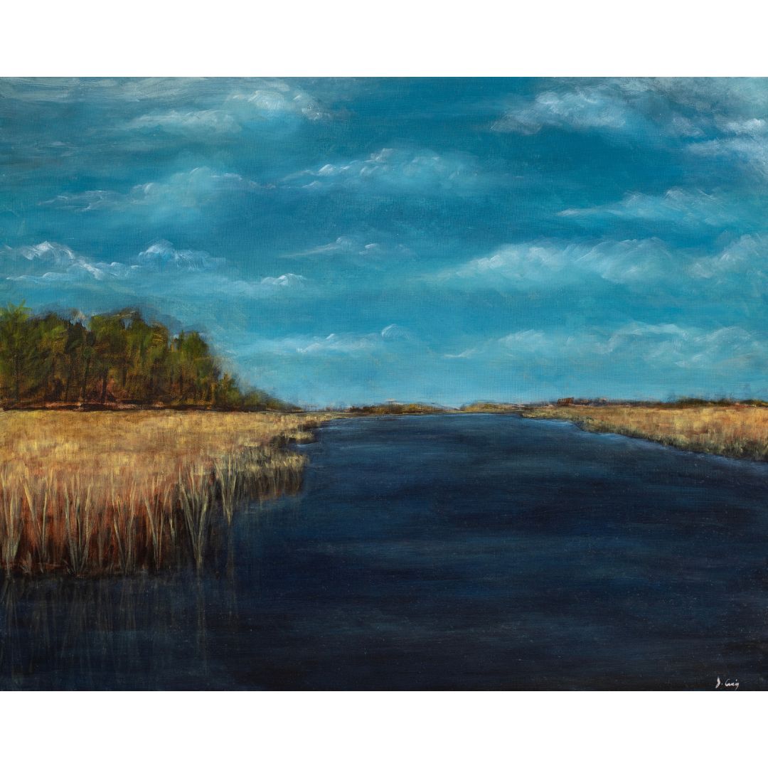 Craig’s brushwork channels the ephemeral forces of nature, capturing its clouds, rising heat, and the subtle interplay of light across vast water. The result is a body of work that feels both grounded in place and alive with movement.