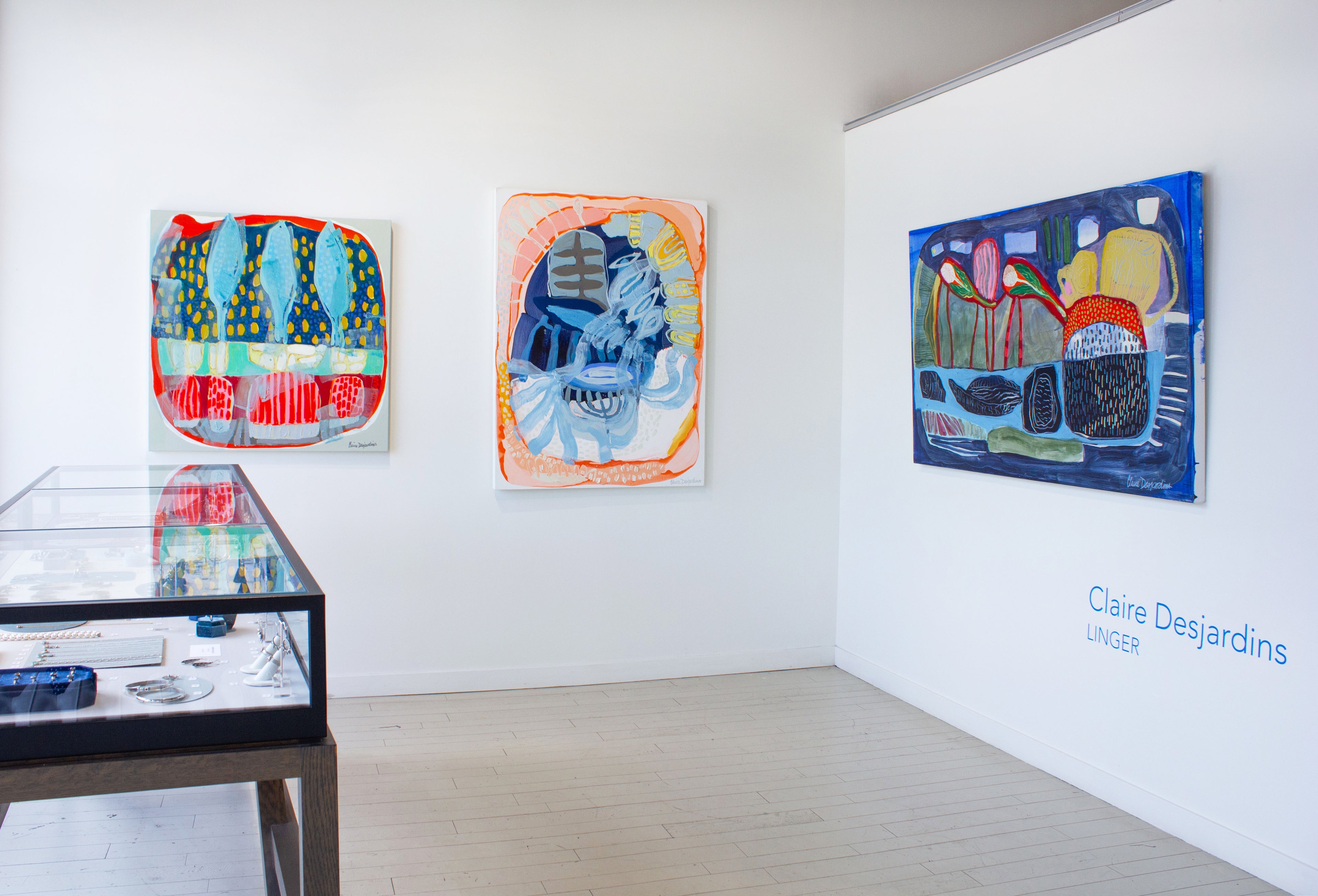 Claire Desjardins (b. 1965, Montreal, Quebec) is an abstract artist known for her vibrant and expressive paintings. While painting remains her primary focus, she travels as often as possible, driven by a curiosity to learn how different cultures live and create art. On a recent trip to Australia, she visited as many Indigenous art galleries as she could and was struck by the storytelling quality of the works on display—an influence that now informs her own practice. She found a similar approach to narrative through visual language on a separate trip to Tanzania. Yet despite her wanderlust, she feels most at home in the serene Laurentian mountains.Claire’s artistic practice also includes steel sculpture, mosaic, and textile arts. Her dynamic and colourful creations reflect deep emotional expression through bold palettes and lively brushstrokes.