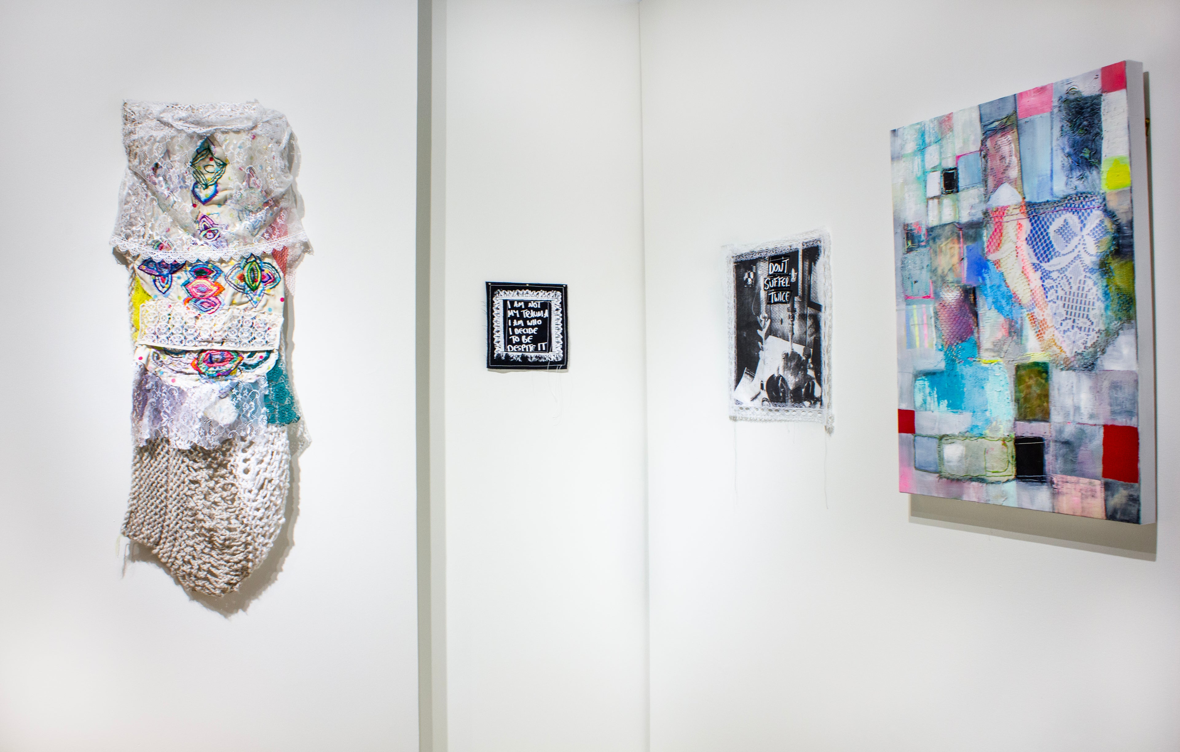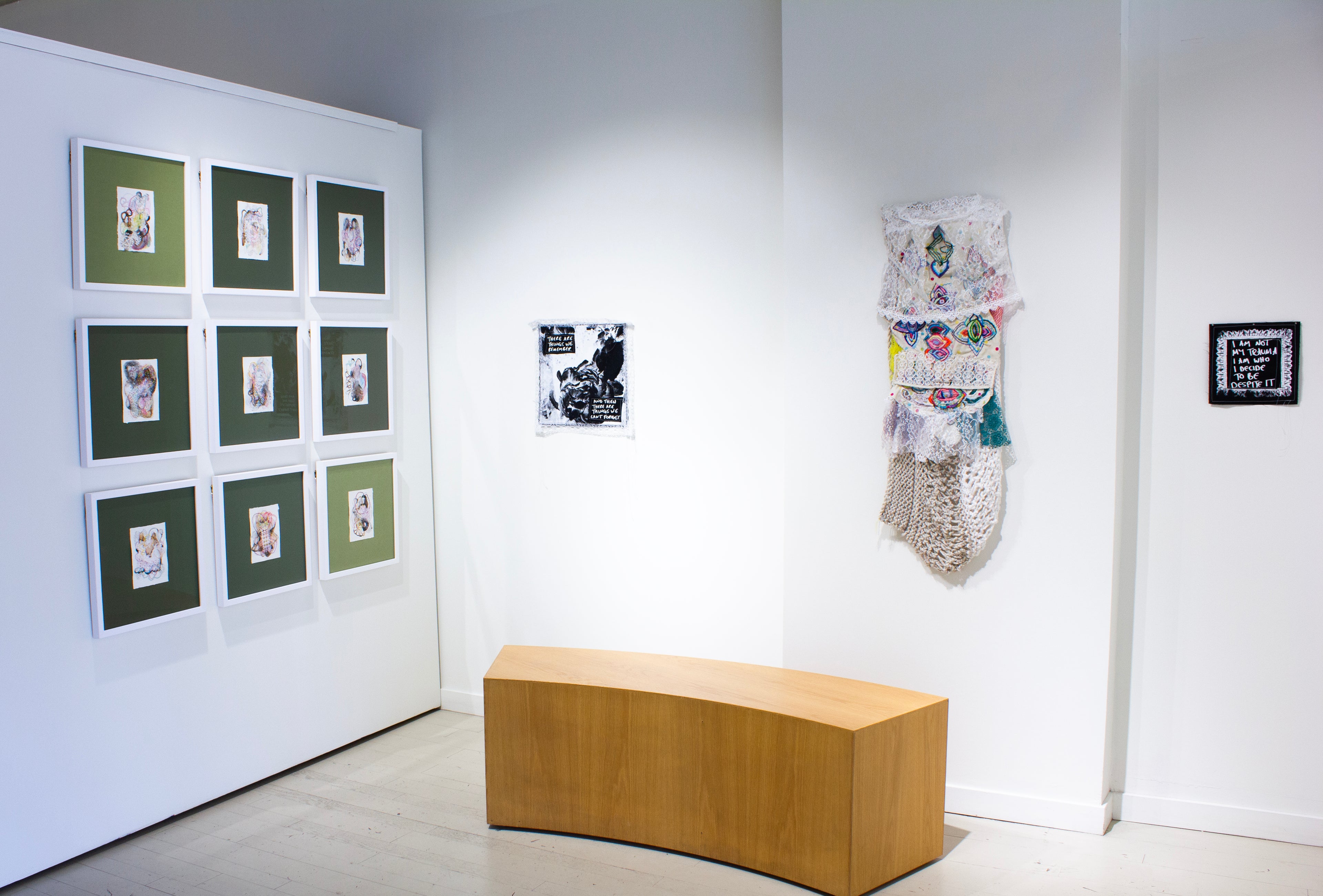 Wall Space Gallery is proud to present Threads of Memory, a duo-exhibition of artwork by Julie Gladstone and Olivia Mae Sinclair. In this exhibition, the artists engage in intimate dialogues with trauma, memory, and transformation. Both artists delve into deeply personal experiences, navigating the intersection of internal and external landscapes, as they explore the ways in which time, spirituality, and physical forms shape our healing processes.