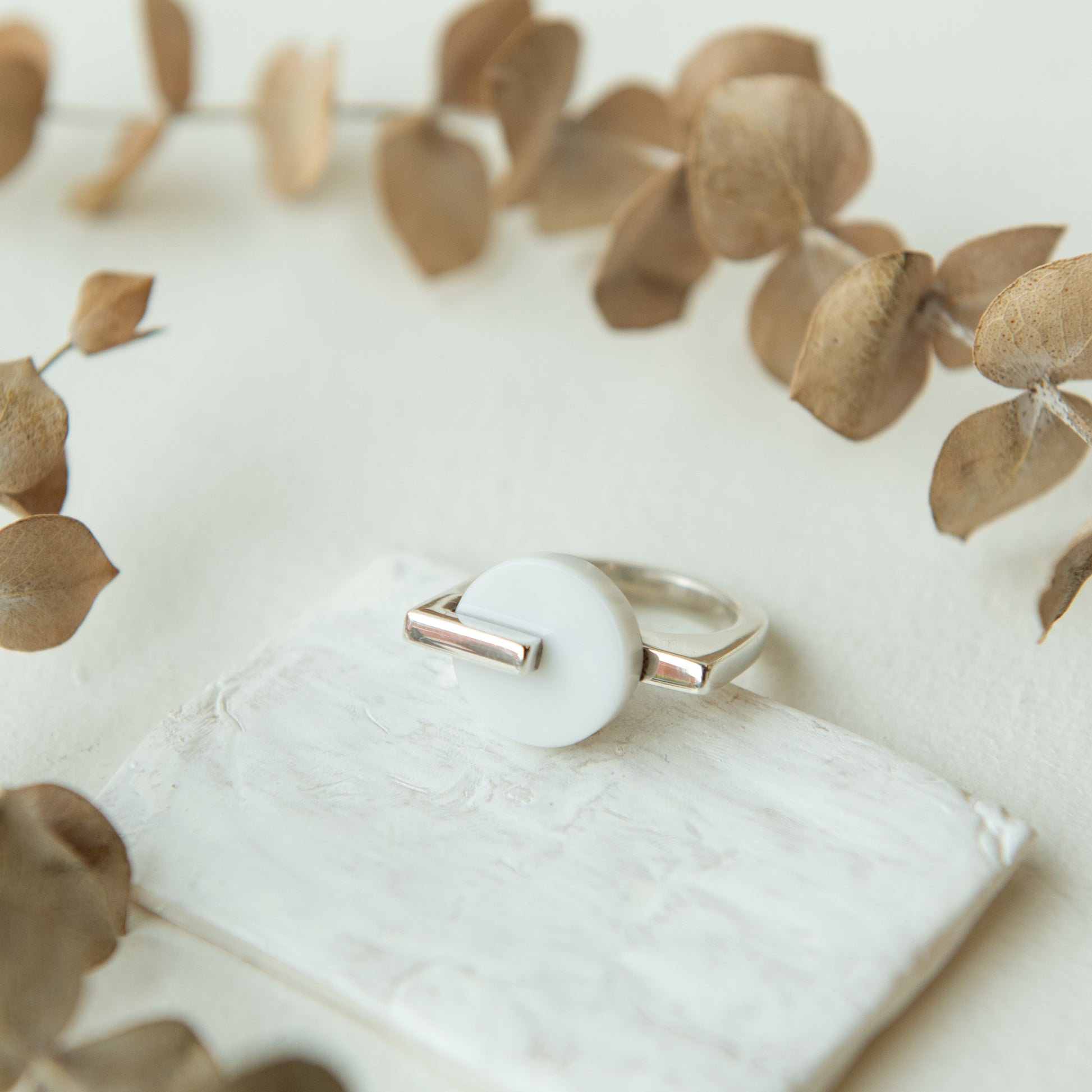 Round White Onyx Ring set in a Peruvian sterling silver setting from the from Apache Tears collection