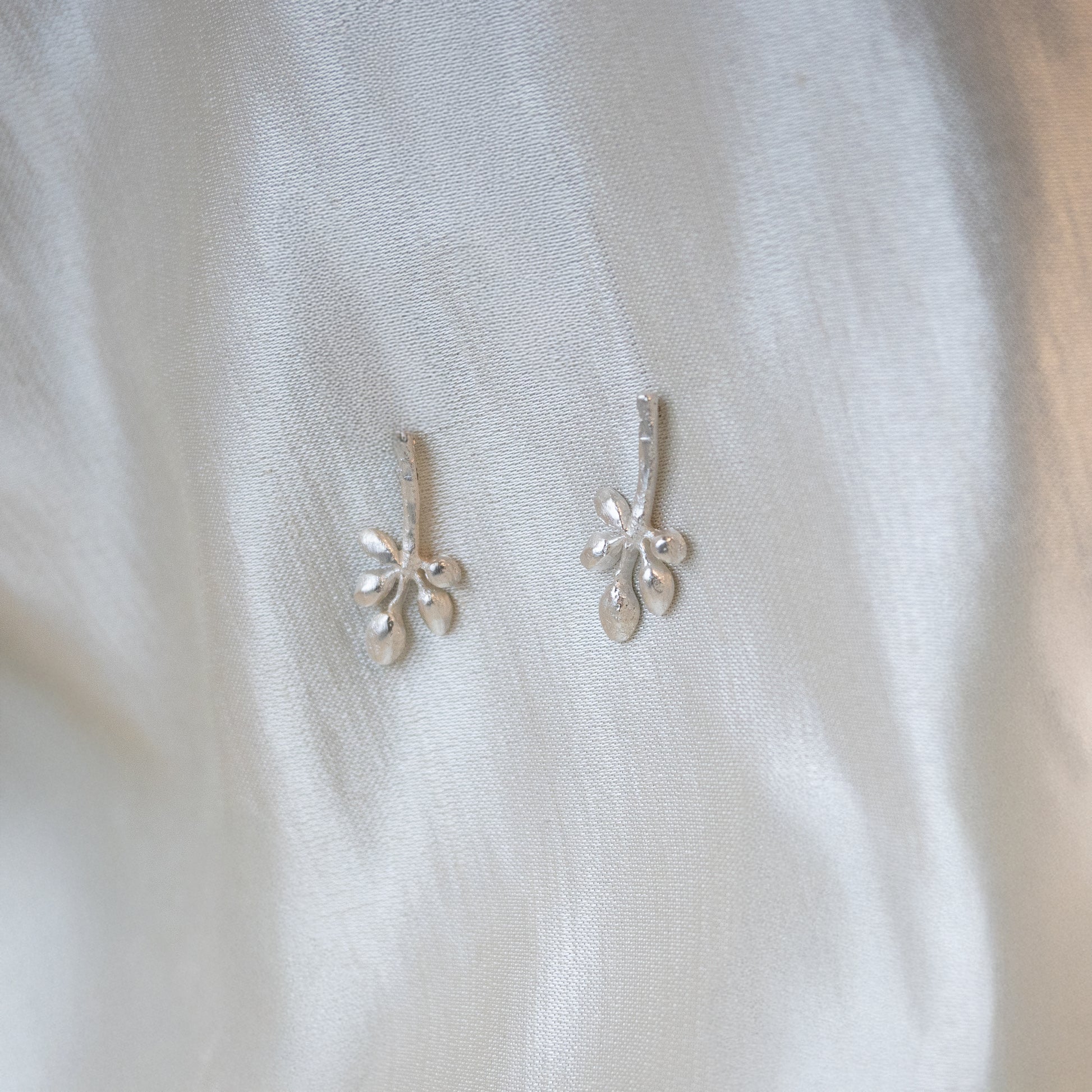 Sterling silver floral quintet long stud earrings with sterling silver findings