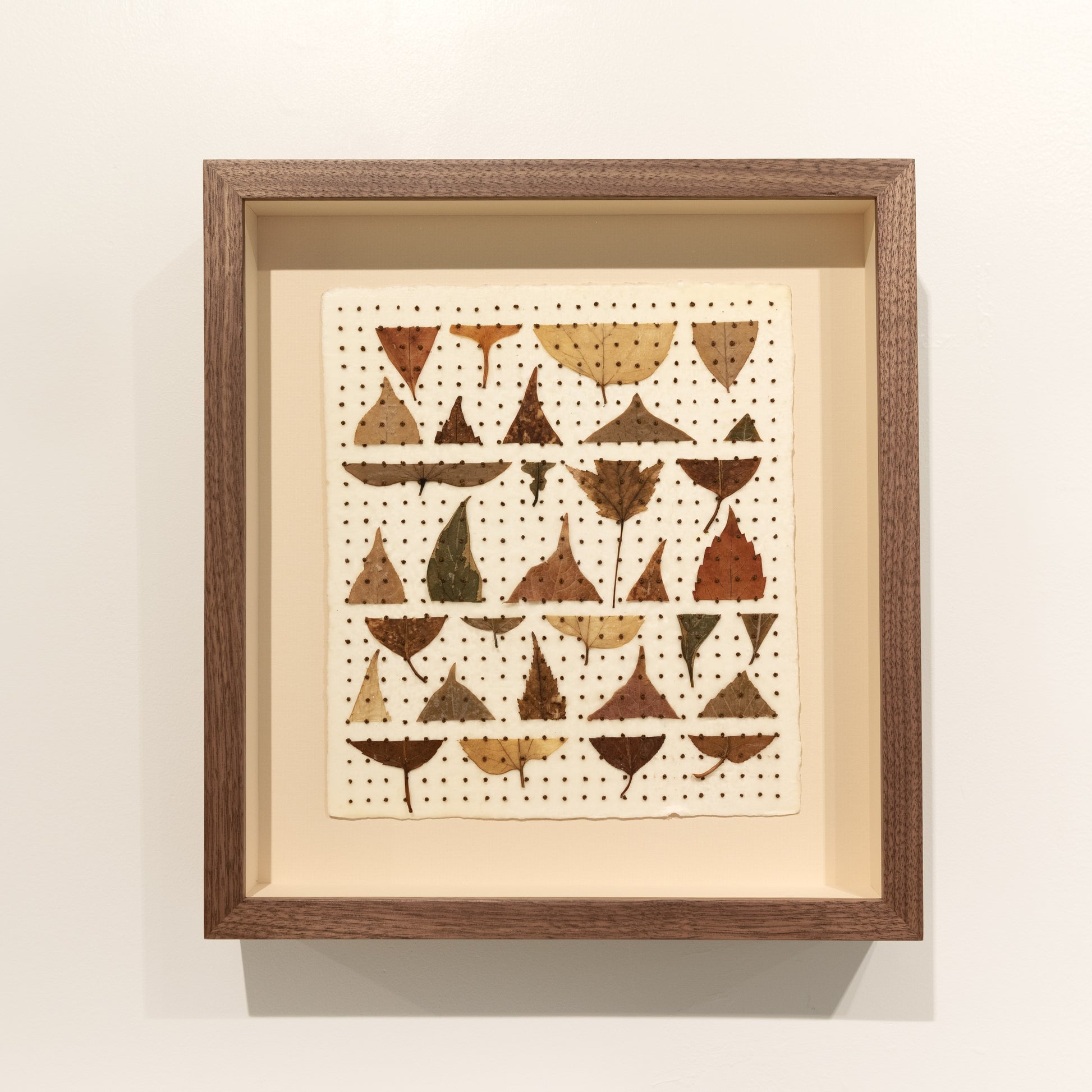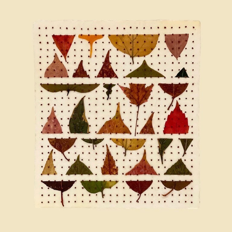 Beeswax, leaves, embroidery floss, on Japanese paper