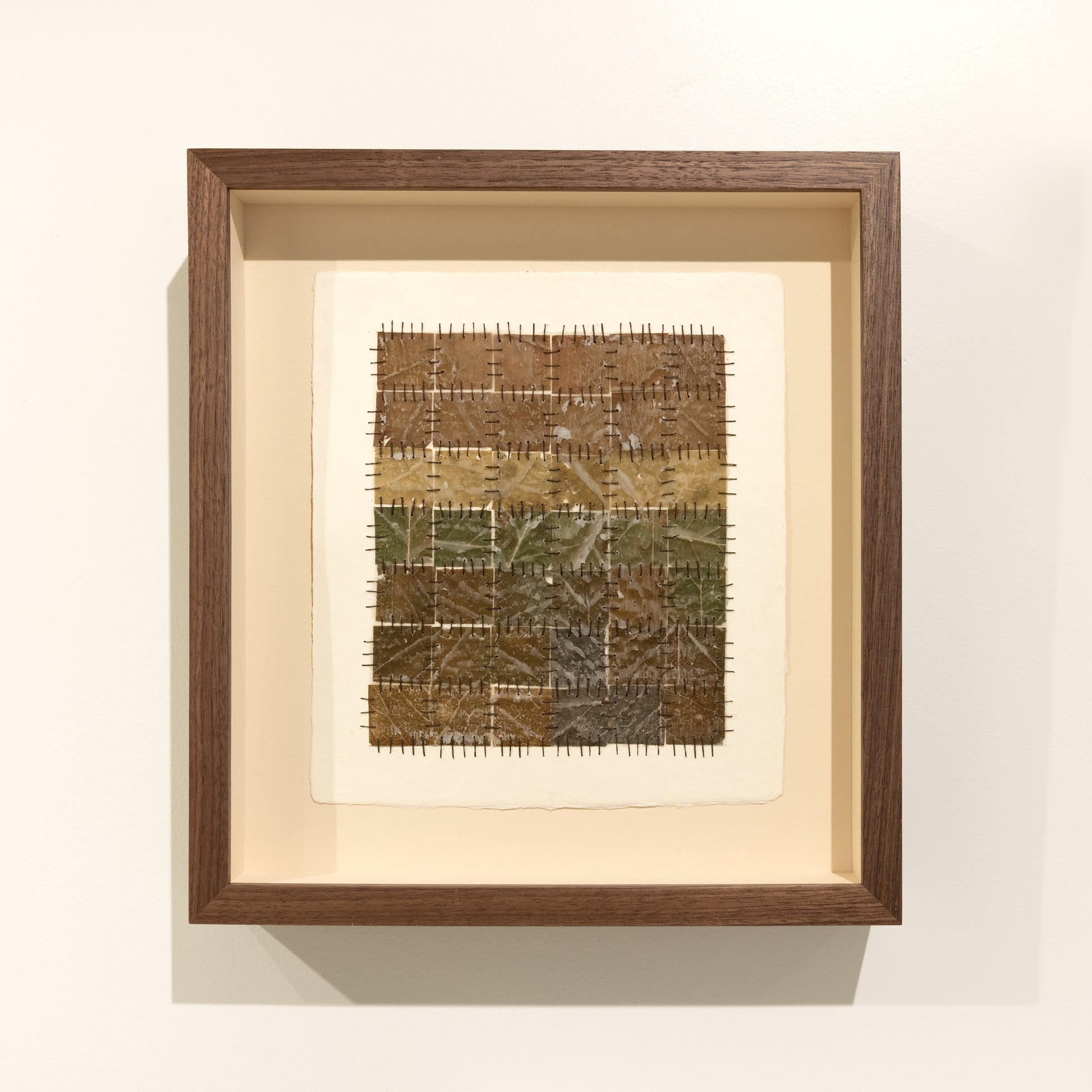 Beeswax, leaves, embroidery floss, on Japanese paper