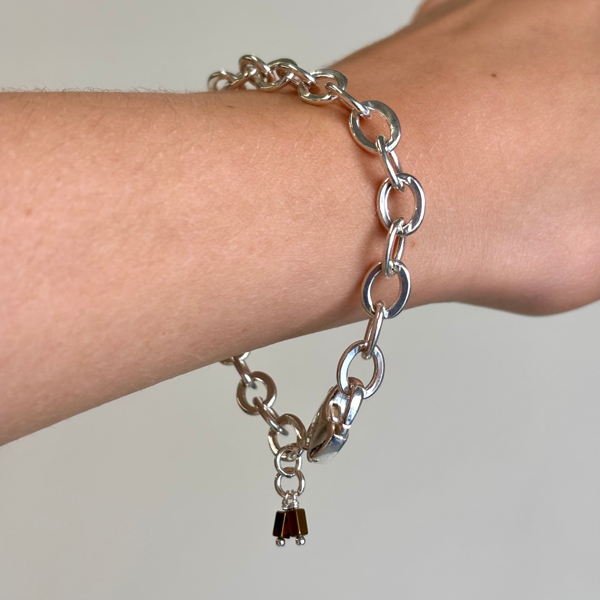 Sterling silver large oval link chain with gold tone hematite beads, with a sterling silver large oval lobster clasp