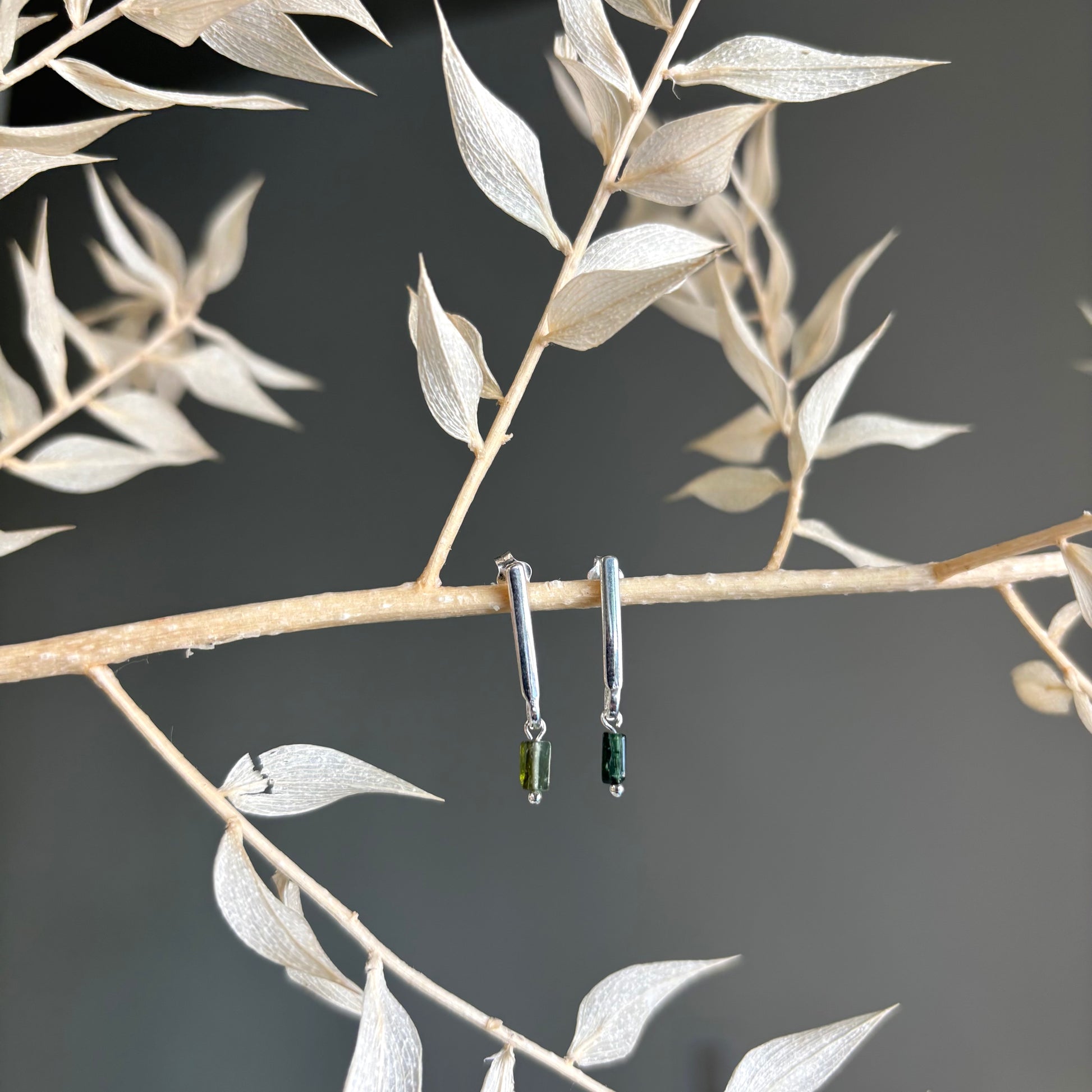 Brenda Wong, Silver Bar Green Tourmaline Earrings