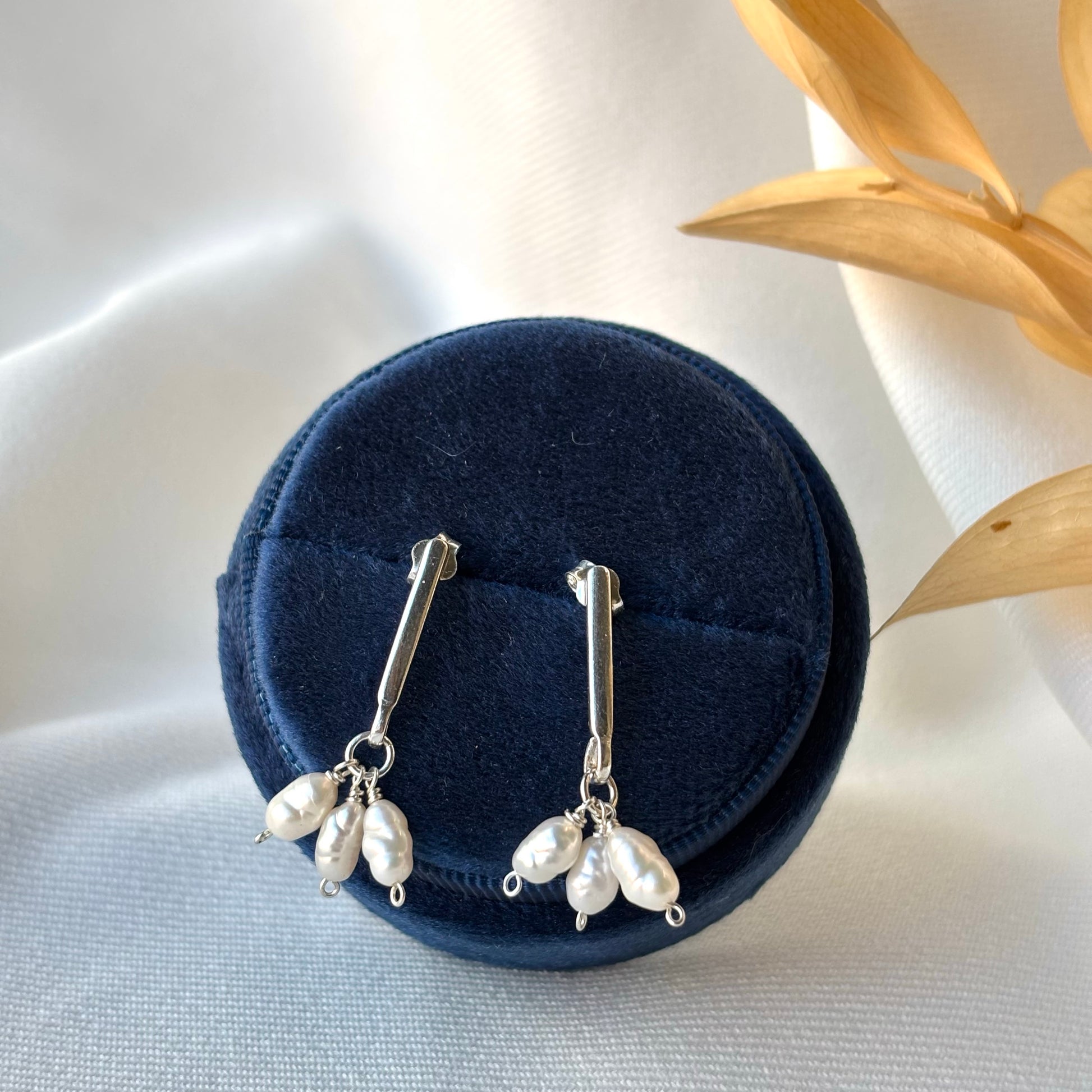 Brenda Wong, Silver Bar Pearl Cluster Earrings