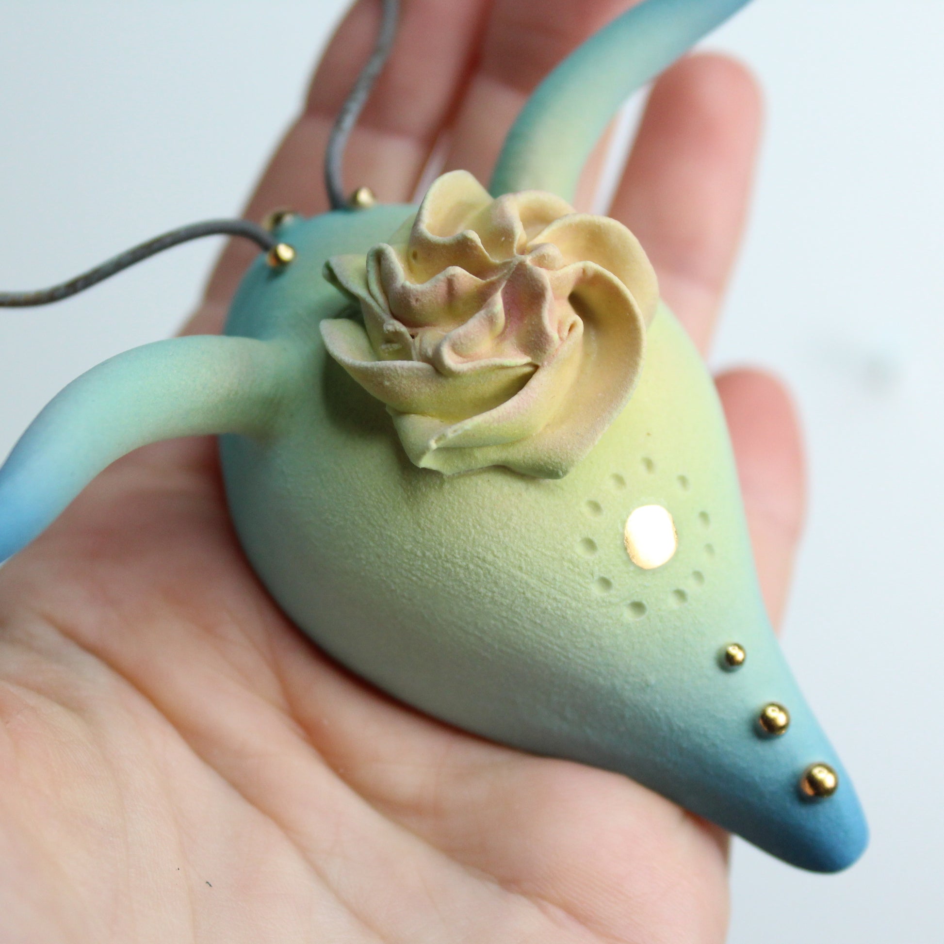 Porcelain, glaze, underglaze, 24k gold luster, mother of pearl luster