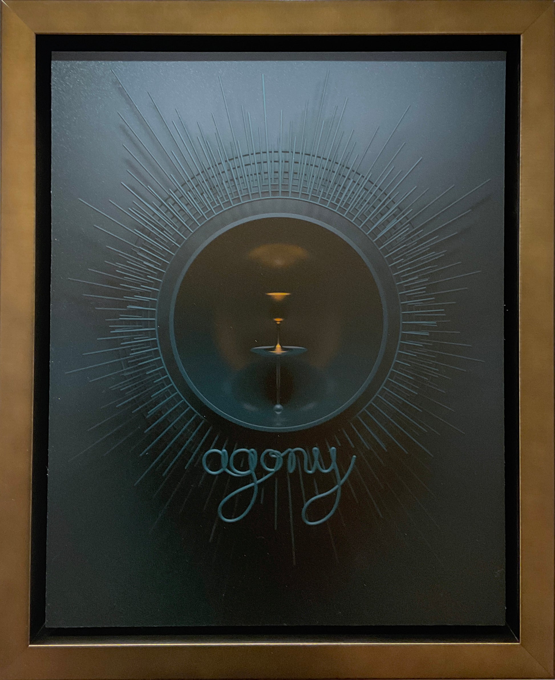 Framed in a gold toned floating frame with a charcoal edge by Wall Space