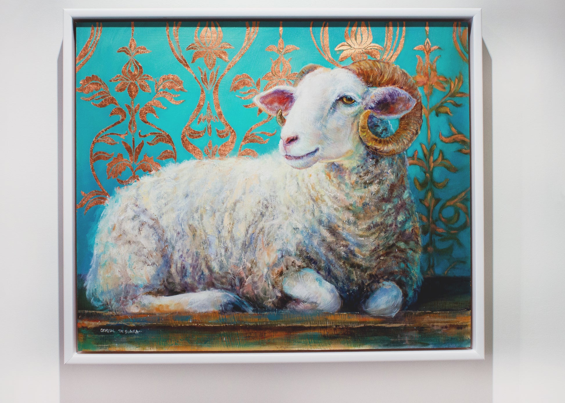 Framed in a white wood floating frame by Wall Space