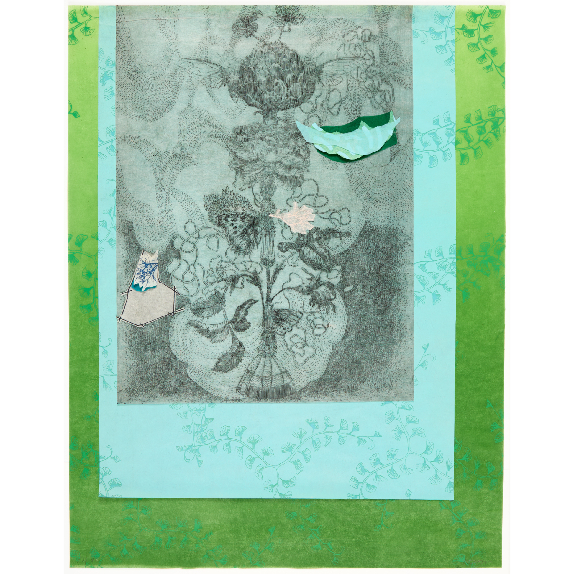 Etching, silkscreen, monotype, collage on Washi paper