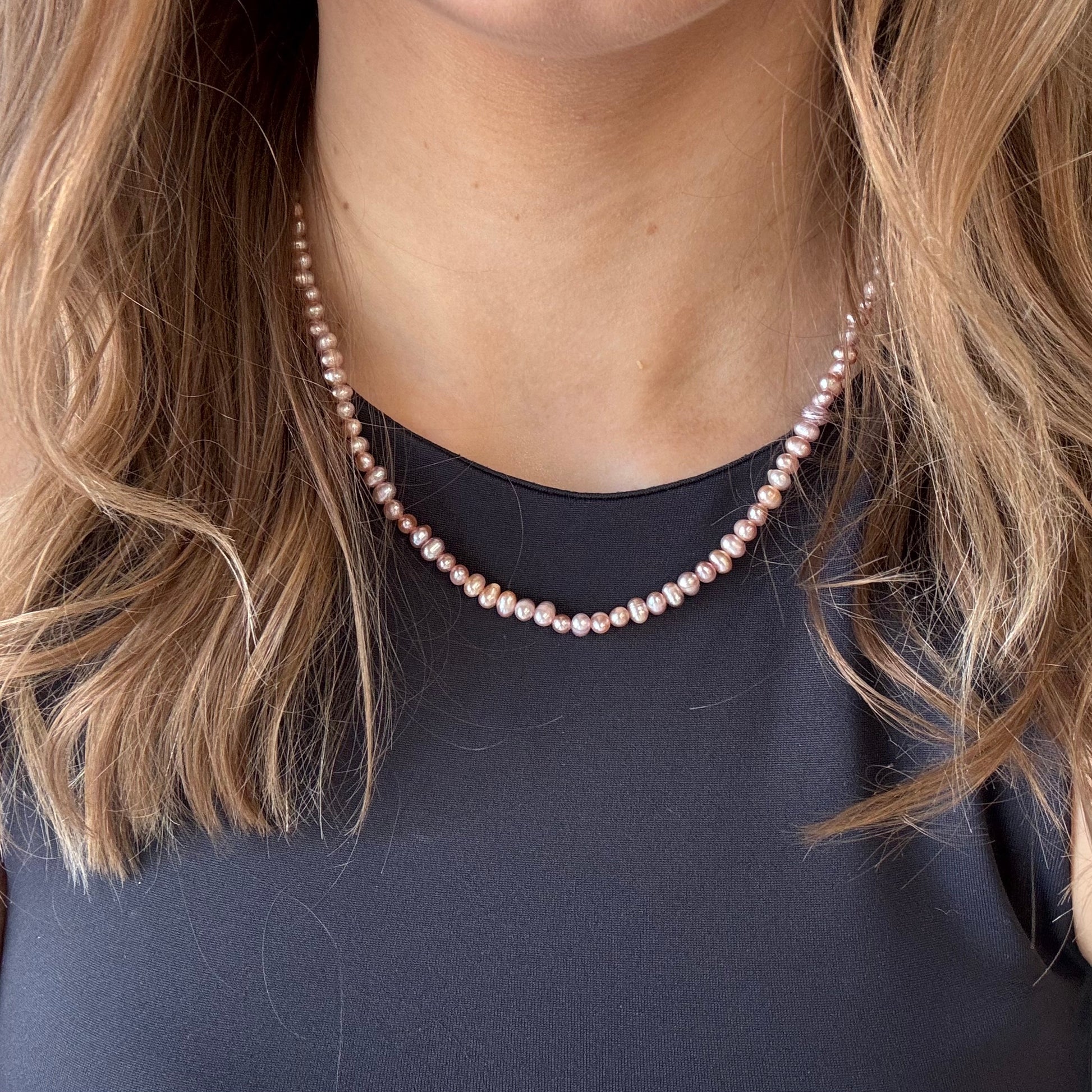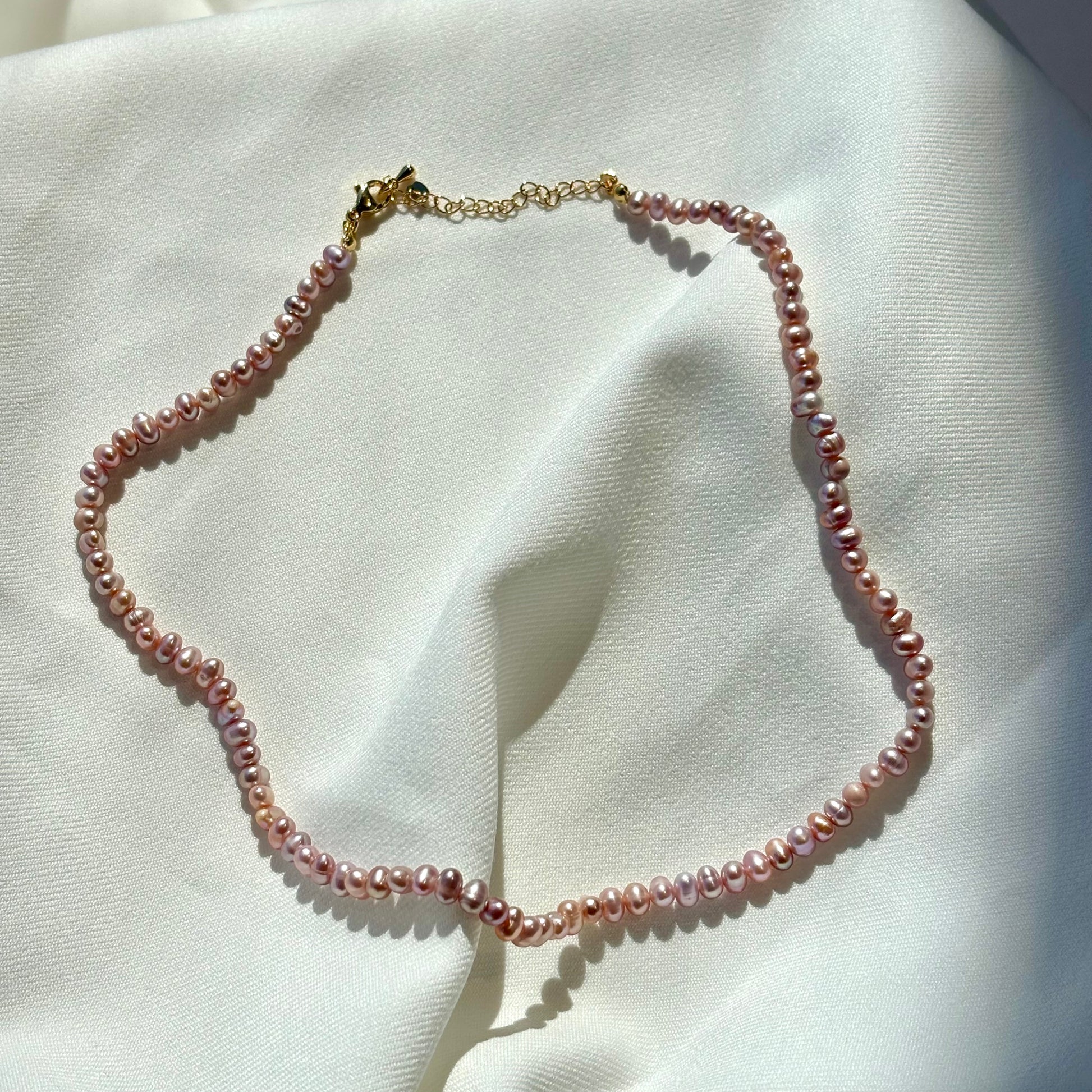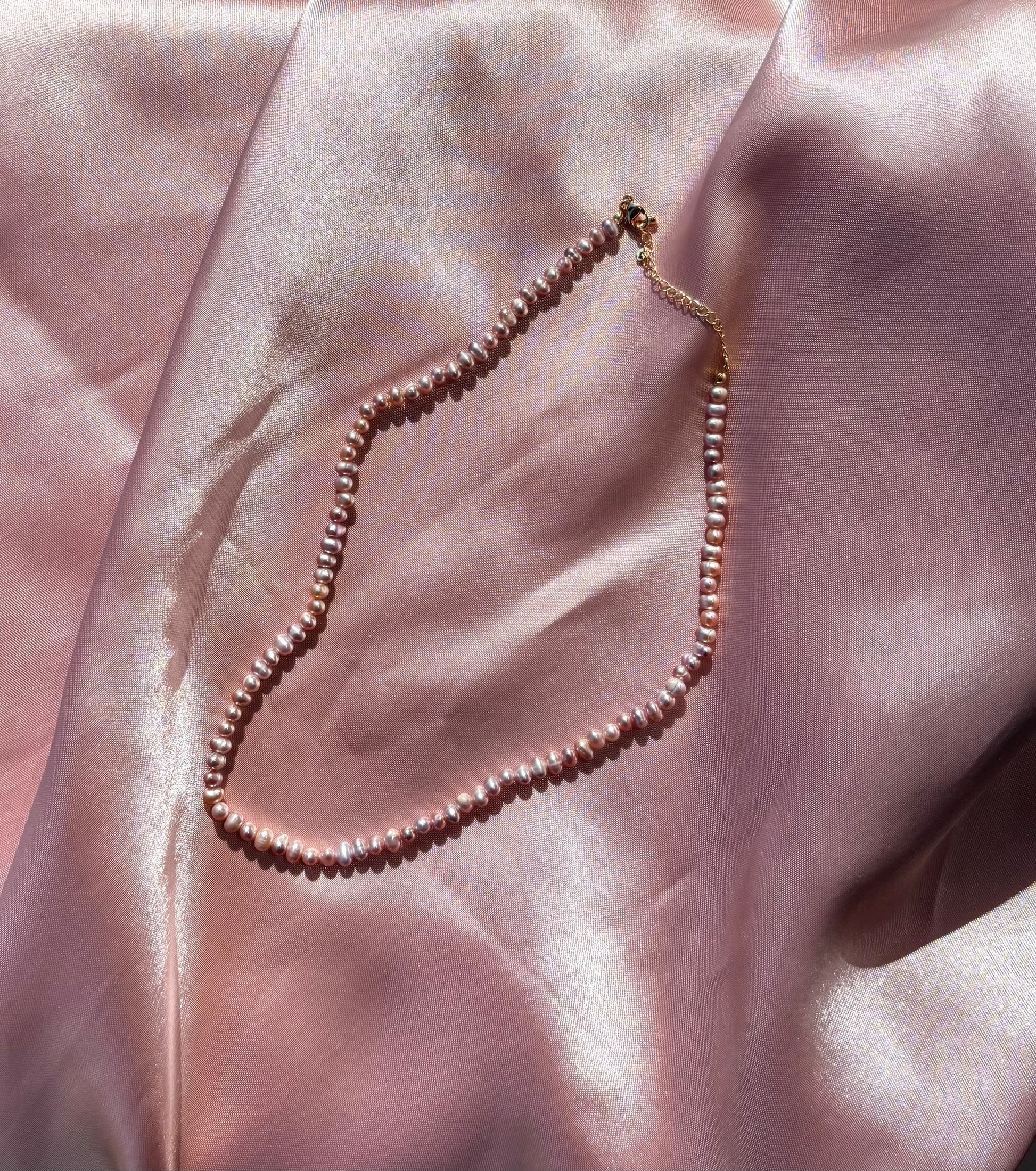 Mauve and pink freshwater pearl necklace with 24kt yellow gold fill fastenings