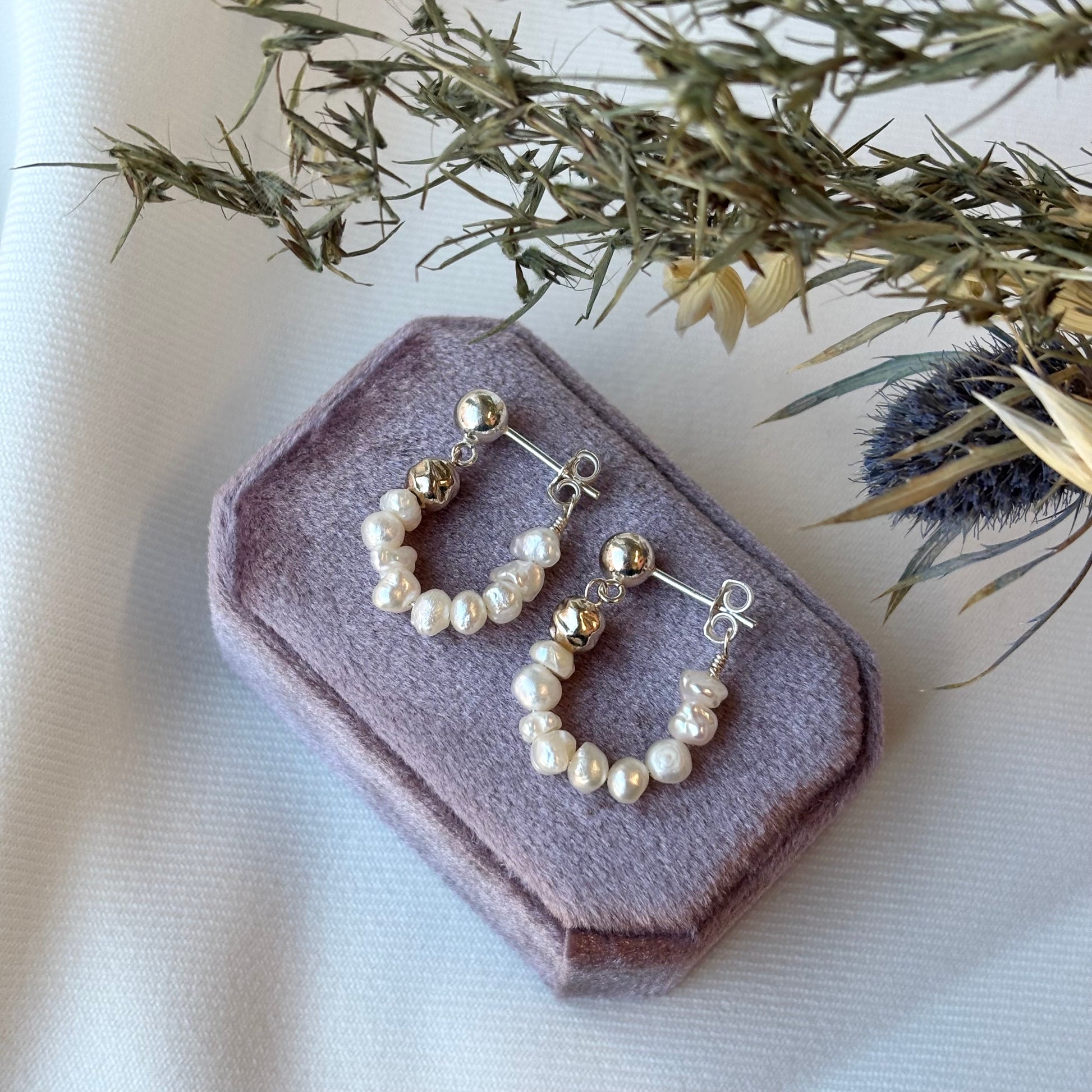 Freshwater seed pearl U shaped hoop theader earrings on sterling silver 5 mm ball studs