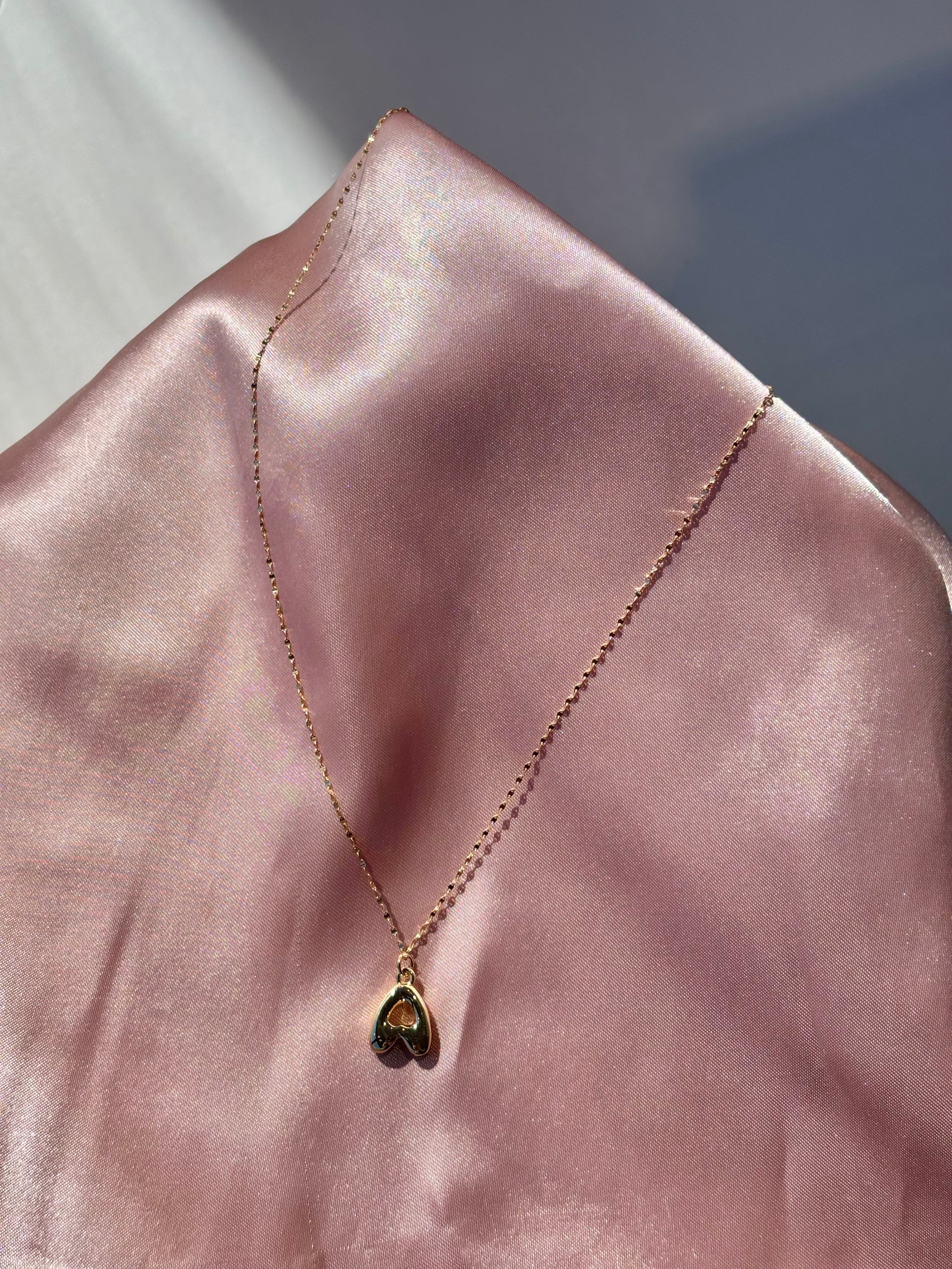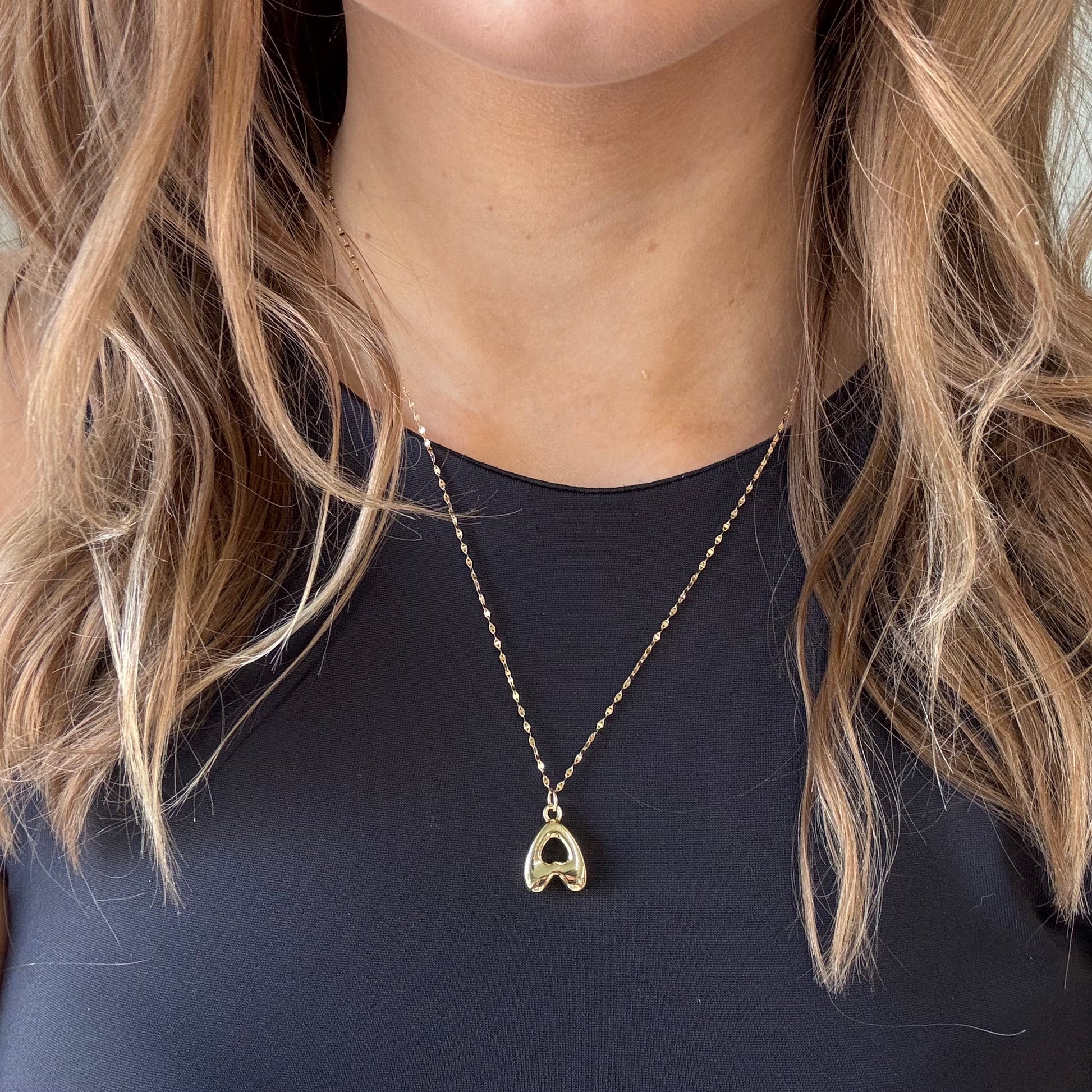 Super Puff 'A' pendant made of 24k gold fill on a 14k gold filled chain