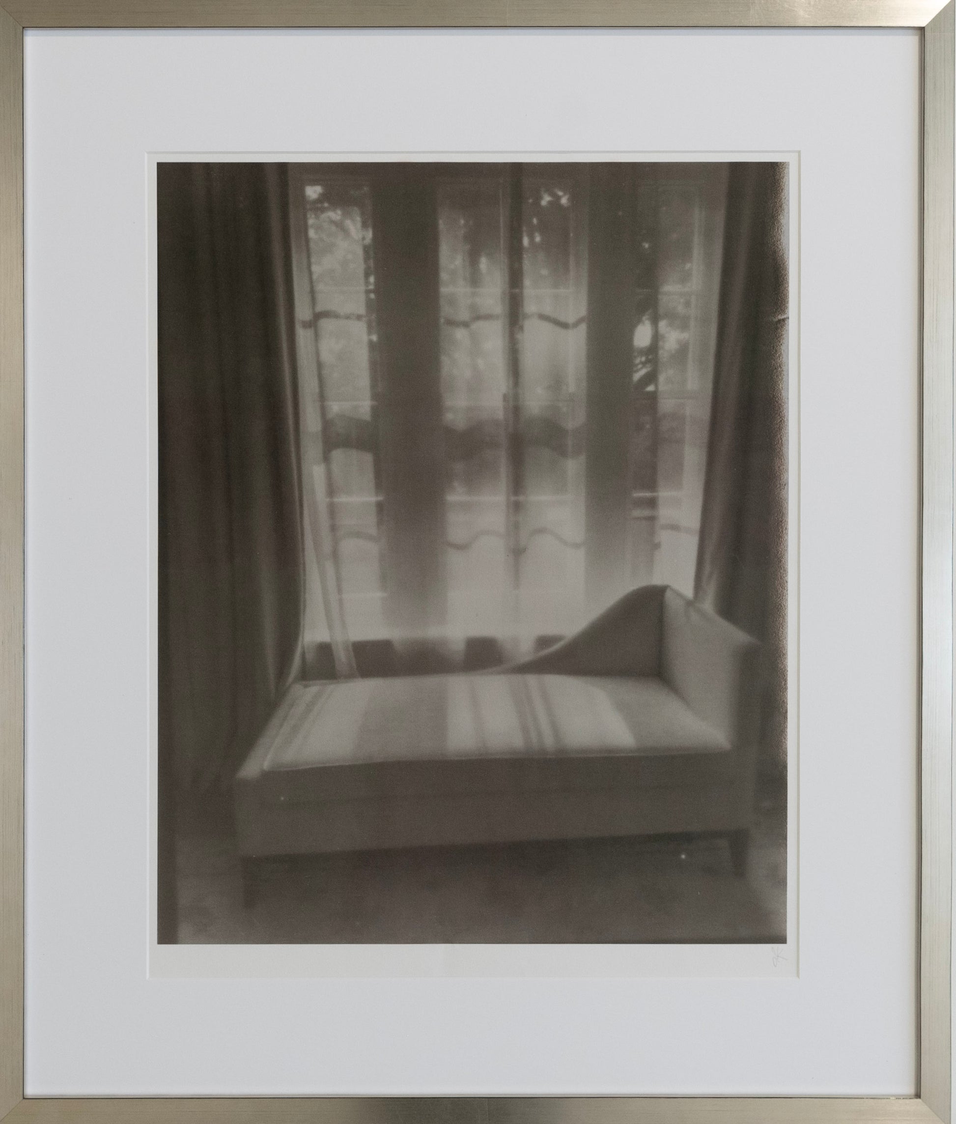 Framed in an antique silver leaf frame with anti-reflective UV70 glass by Wall Space
