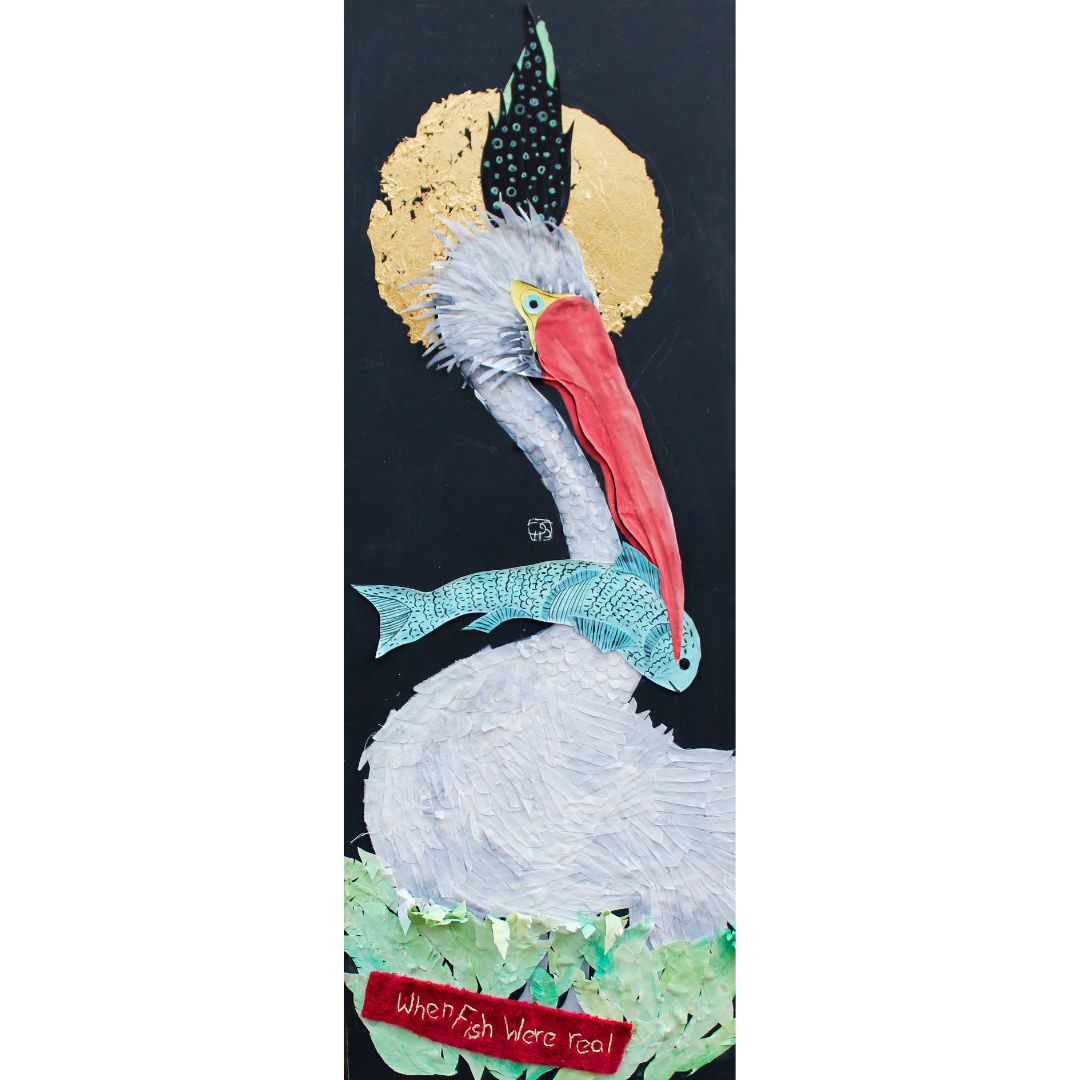 Fabric, paper, embroidery, gold leaf, gouache and acrylic on birch