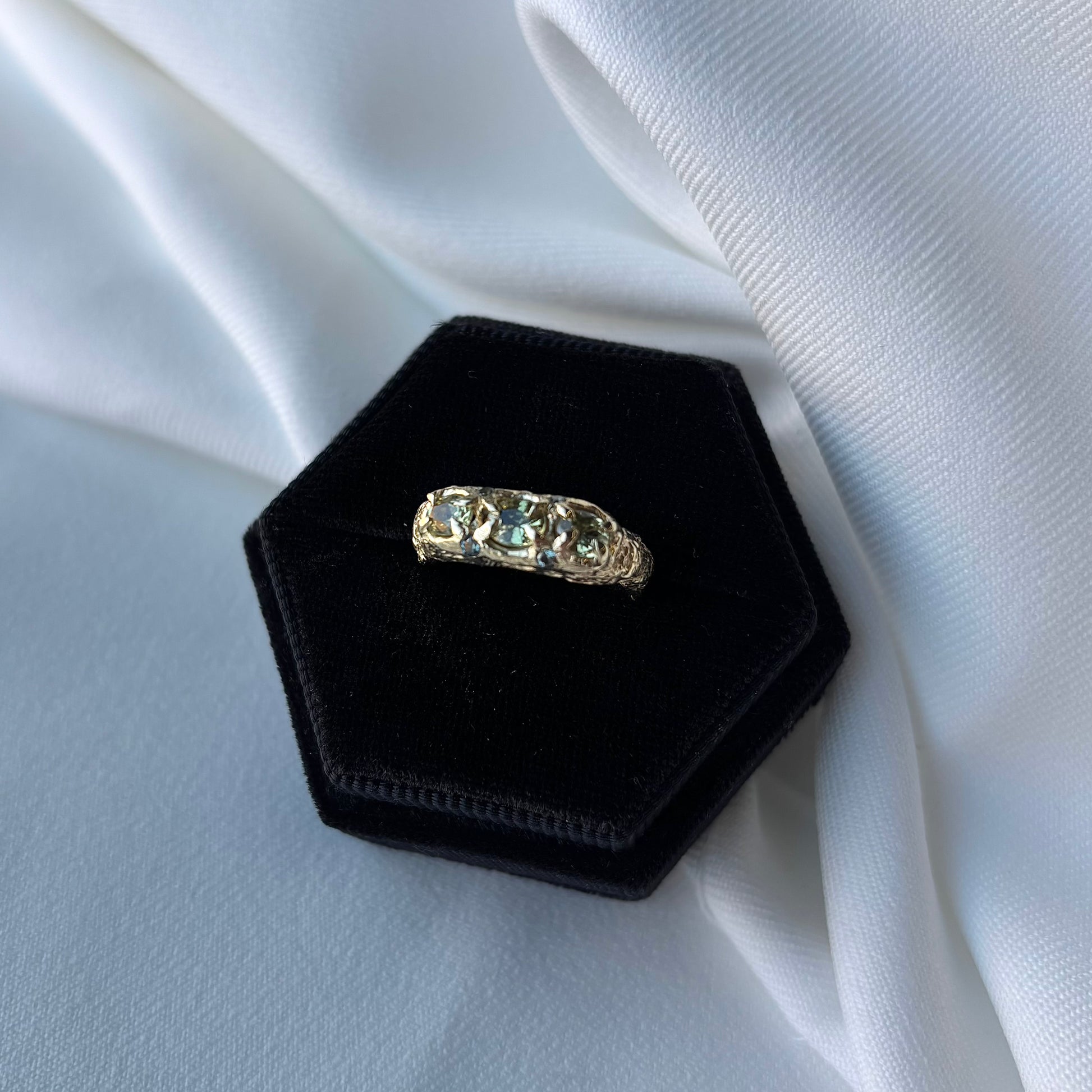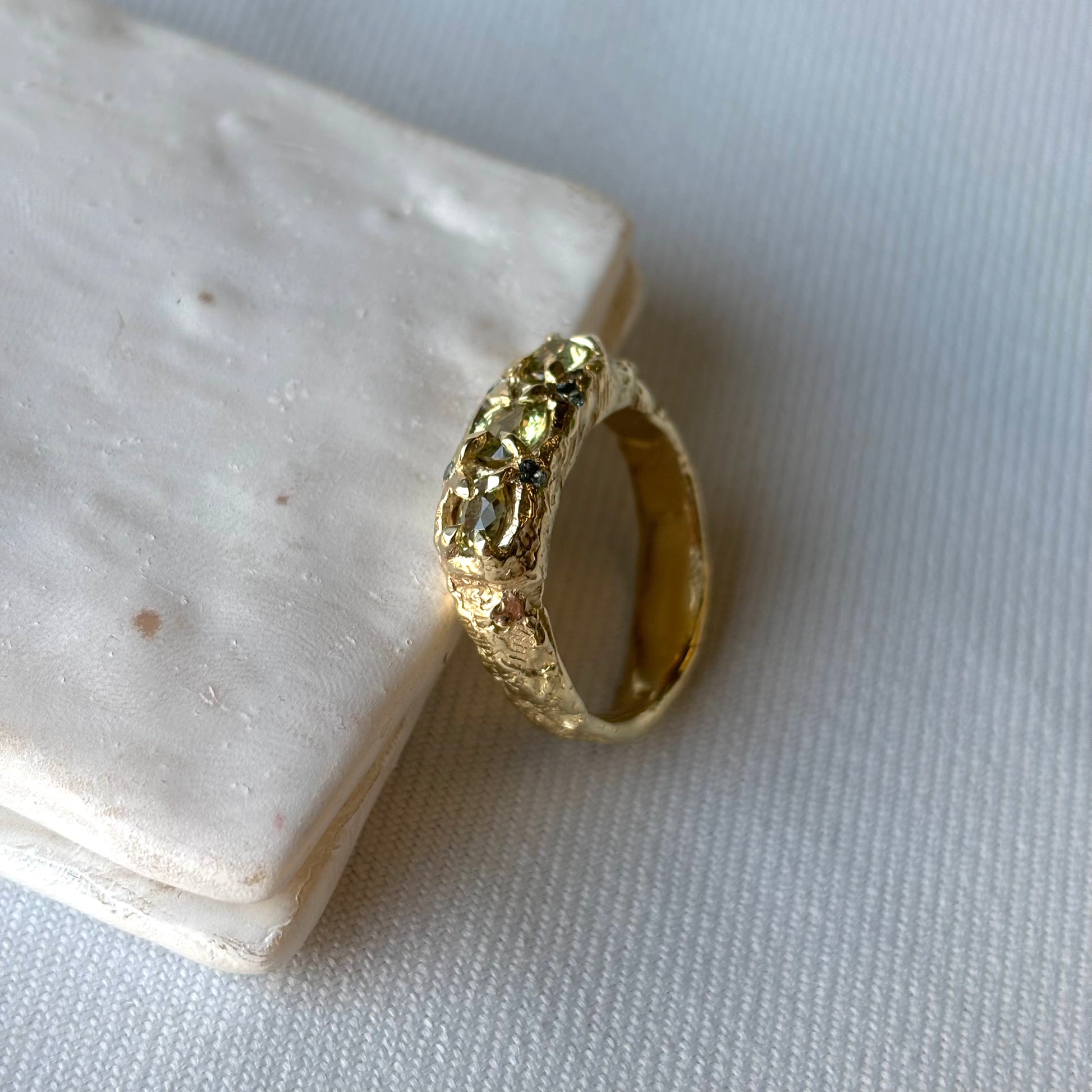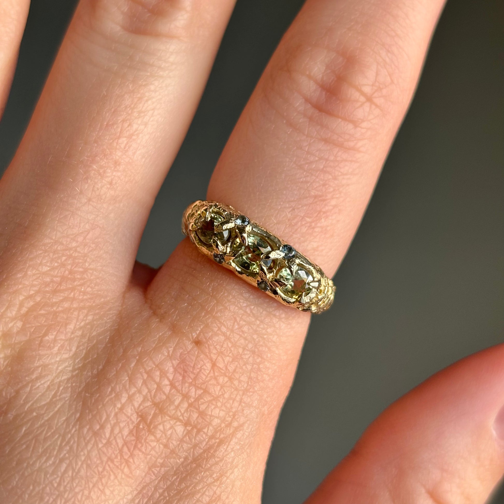Green sapphire 5x4, 4x3, 4x3, teal sapphire 4 x 1.80mm, set in 14k green gold