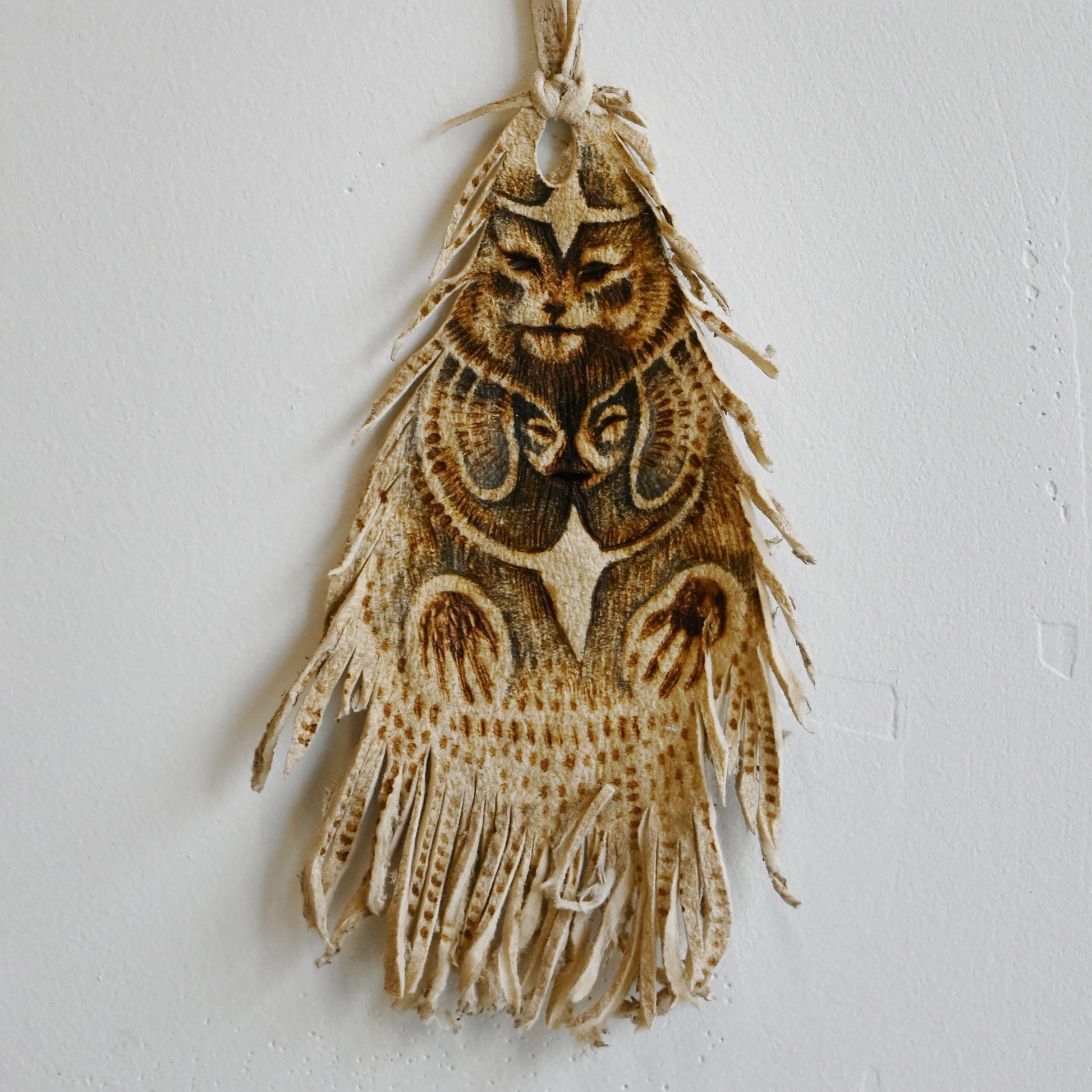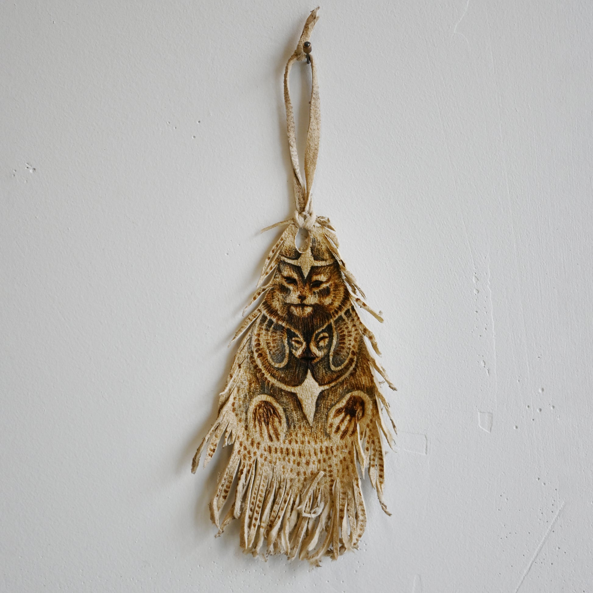 Naturally tanned sheep skin with birch soot and linseed oil and lavender essential oil
