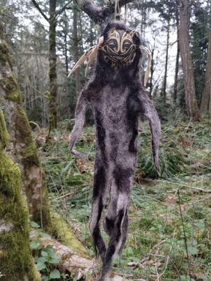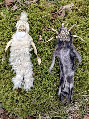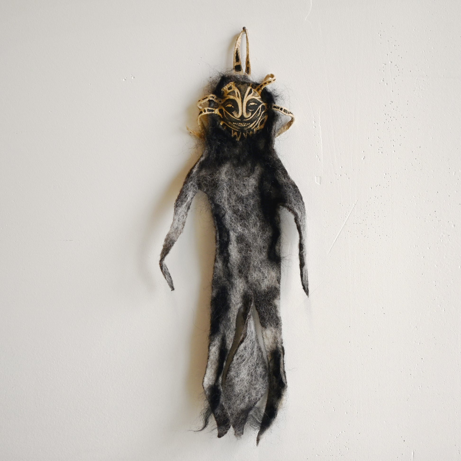 Sheep wool felting and naturally tanned sheep skin with flax thread