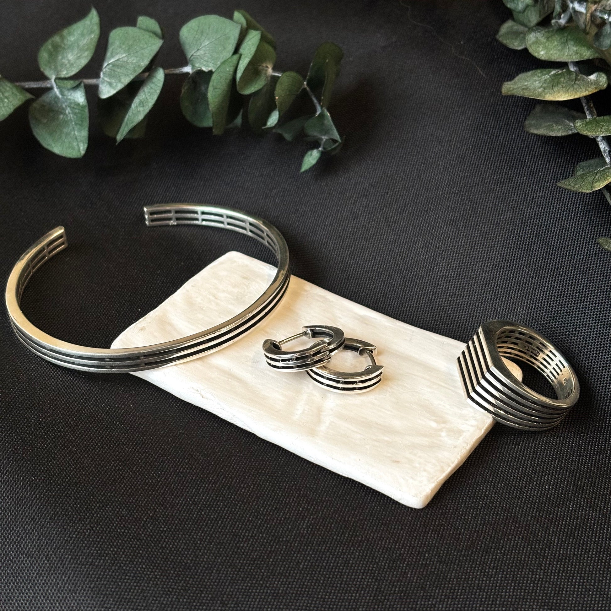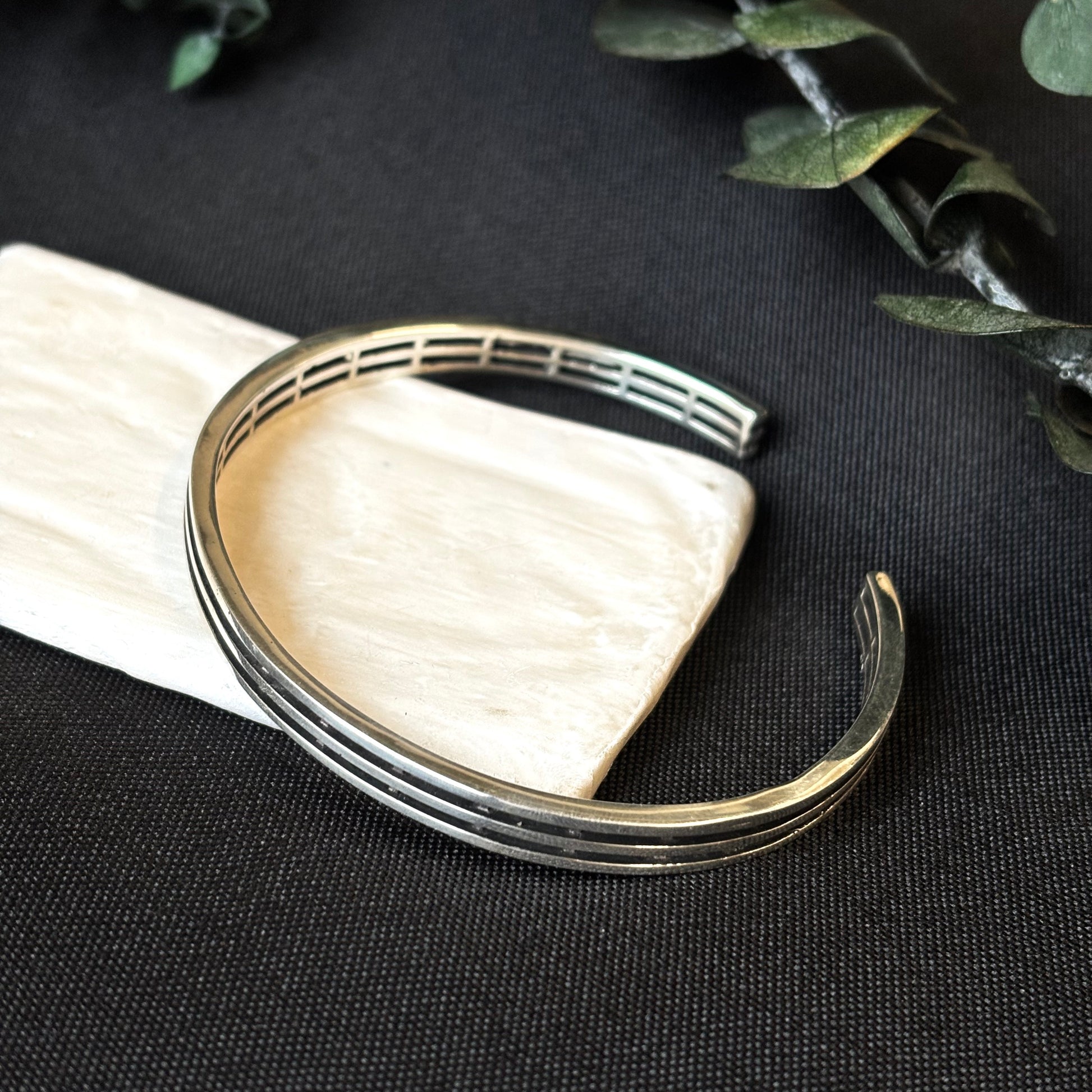 Sterling silver men's/unisex cuff bracelet with line design
