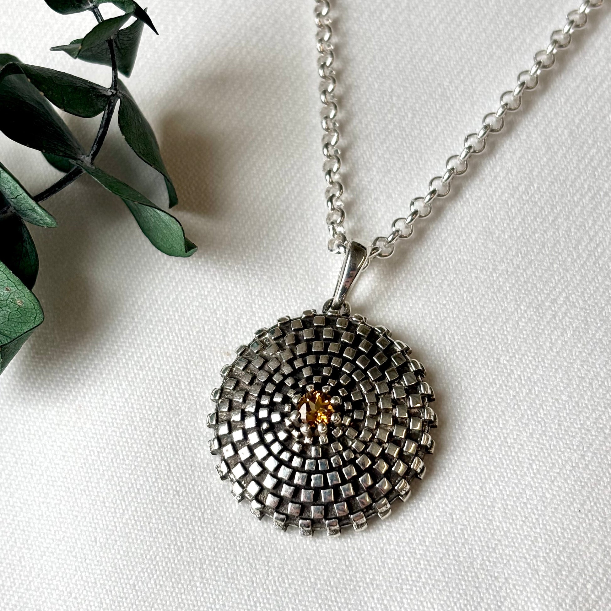 Sterling silver men's/unisex necklace with Odyssey pendant design and a citrine gemstone