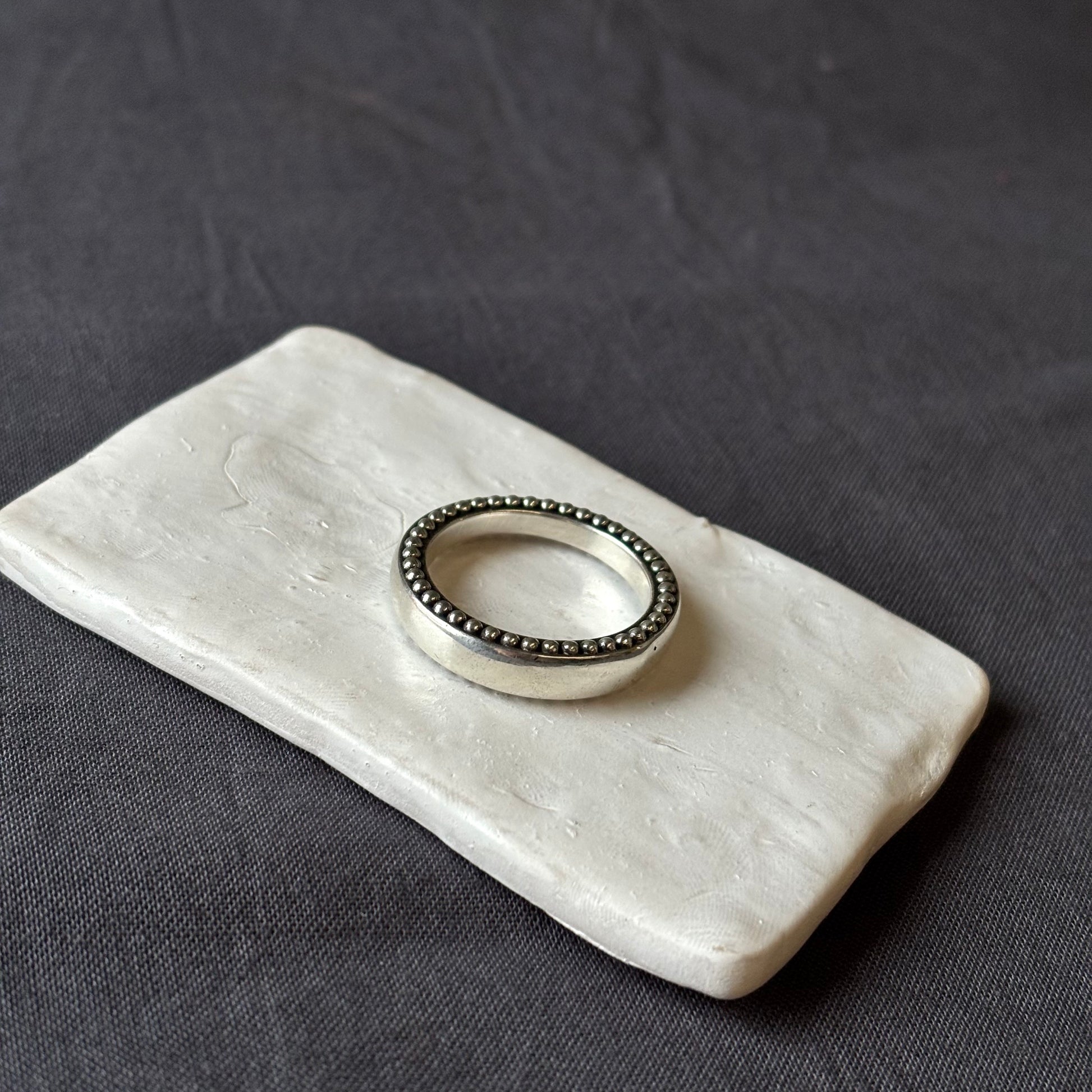 Sterling silver men's/unisex ring with ball design on top and bottom of ring
